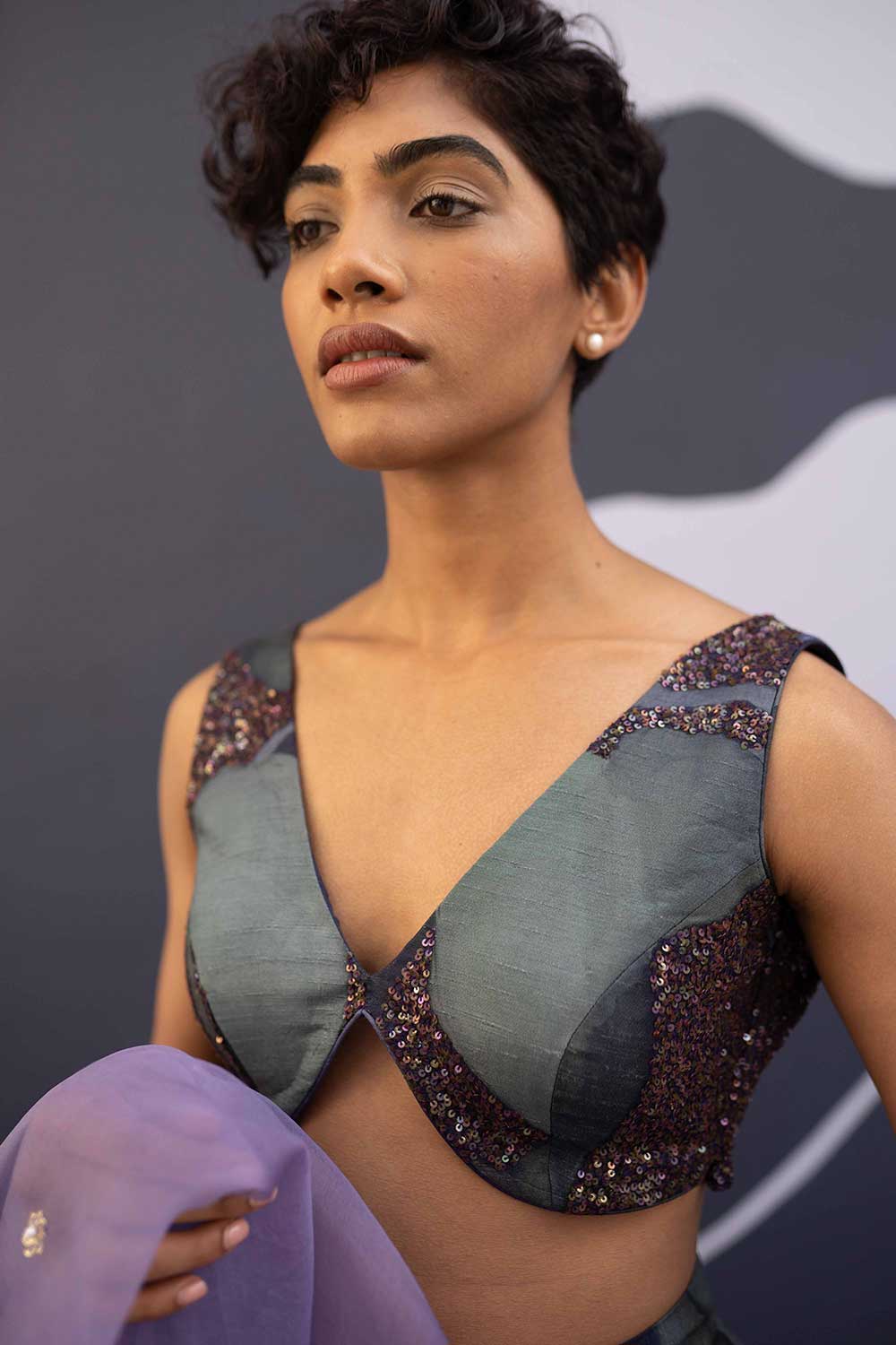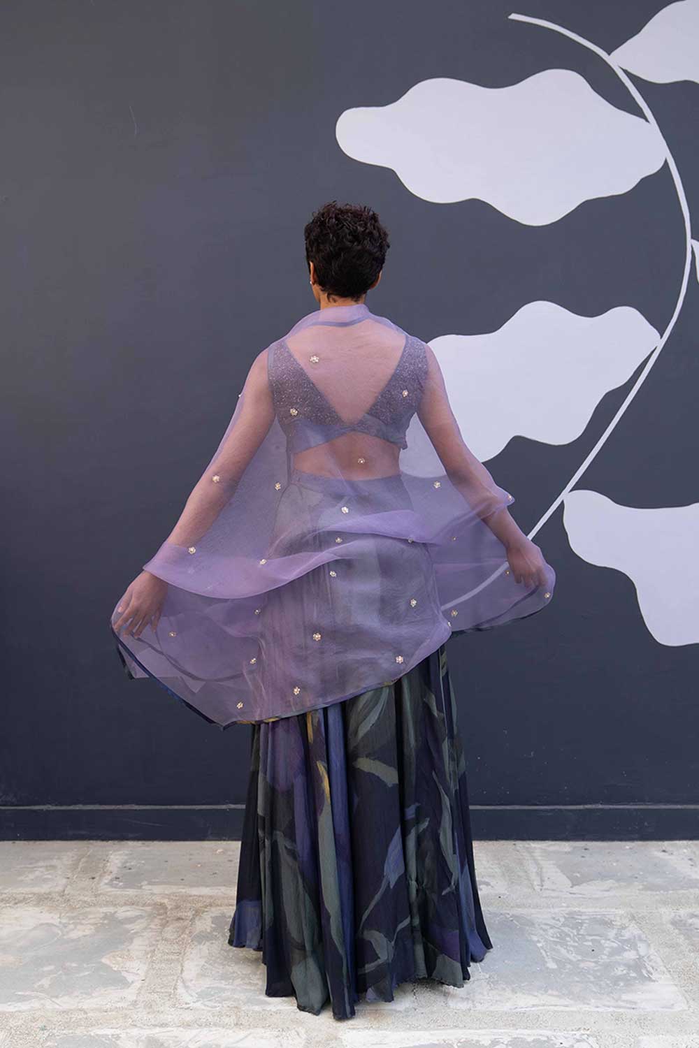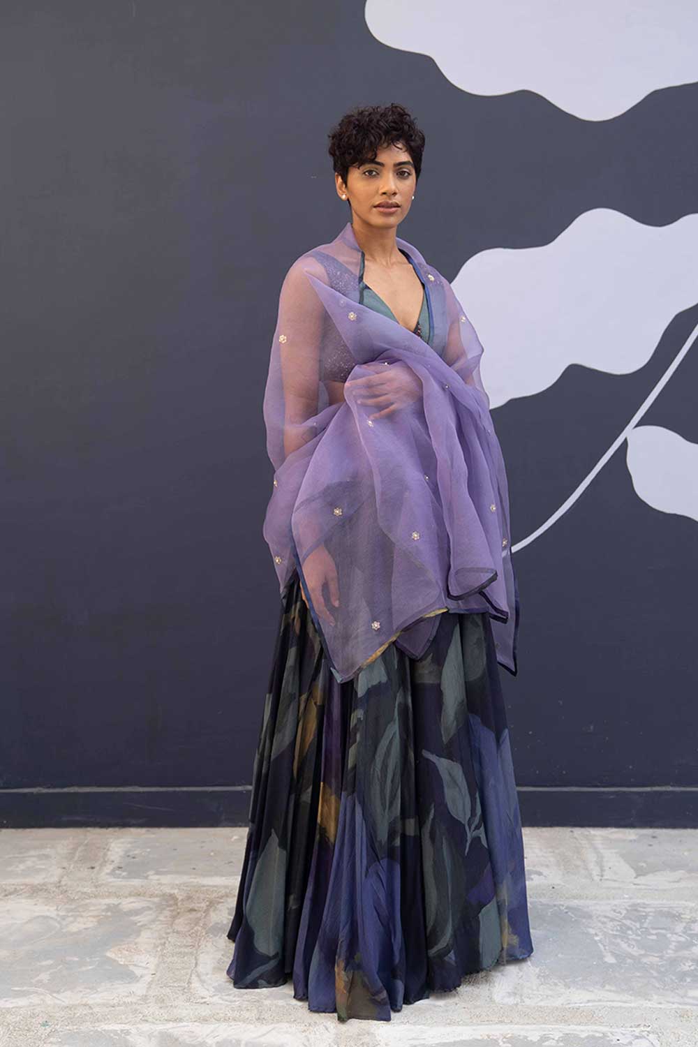 .The Lehenga is crafted in babka print carefully printed on dora silk.