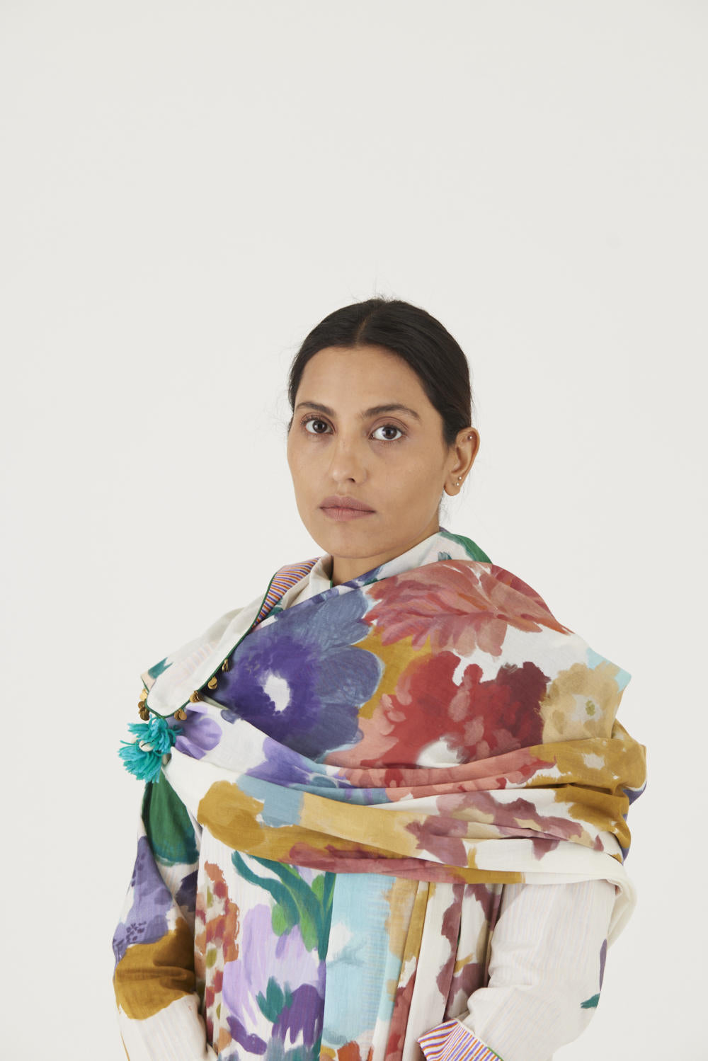 Priya takes her art and places it on garments that slip seamlessly into wardrobes around the world — dresses, blouses, scarves, and sarees that carry a certain versatility: expressive without being loud, contemporary without losing cultural nuance.