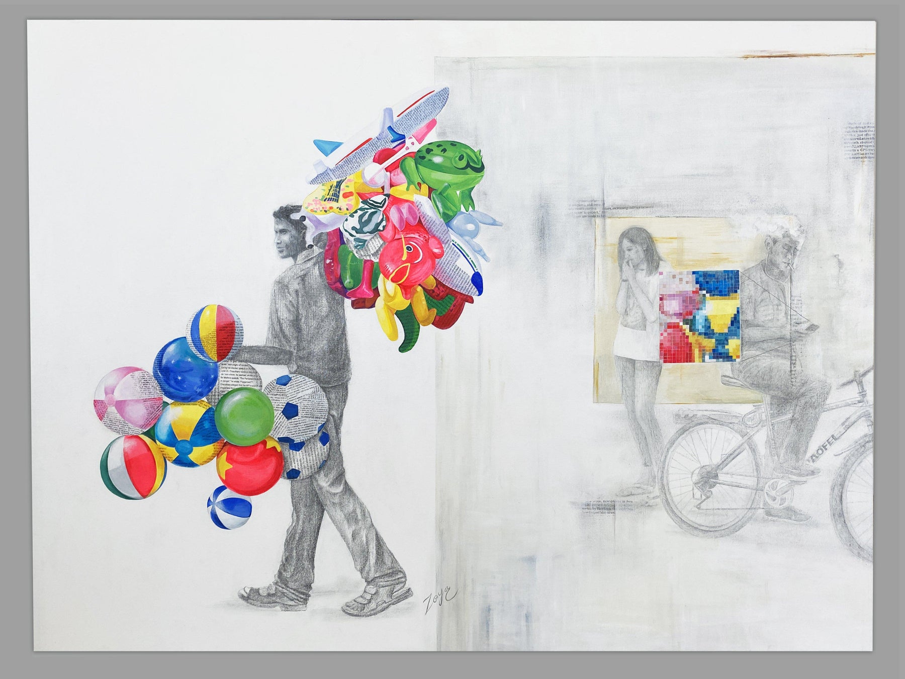 This series deals with notions of media consumption in this mediated world. The inflated toys & balloons here, are a metaphor for instant news and information. The artwork playfully nudges you to think about our material and immaterial consumption patterns and how it shapes us.