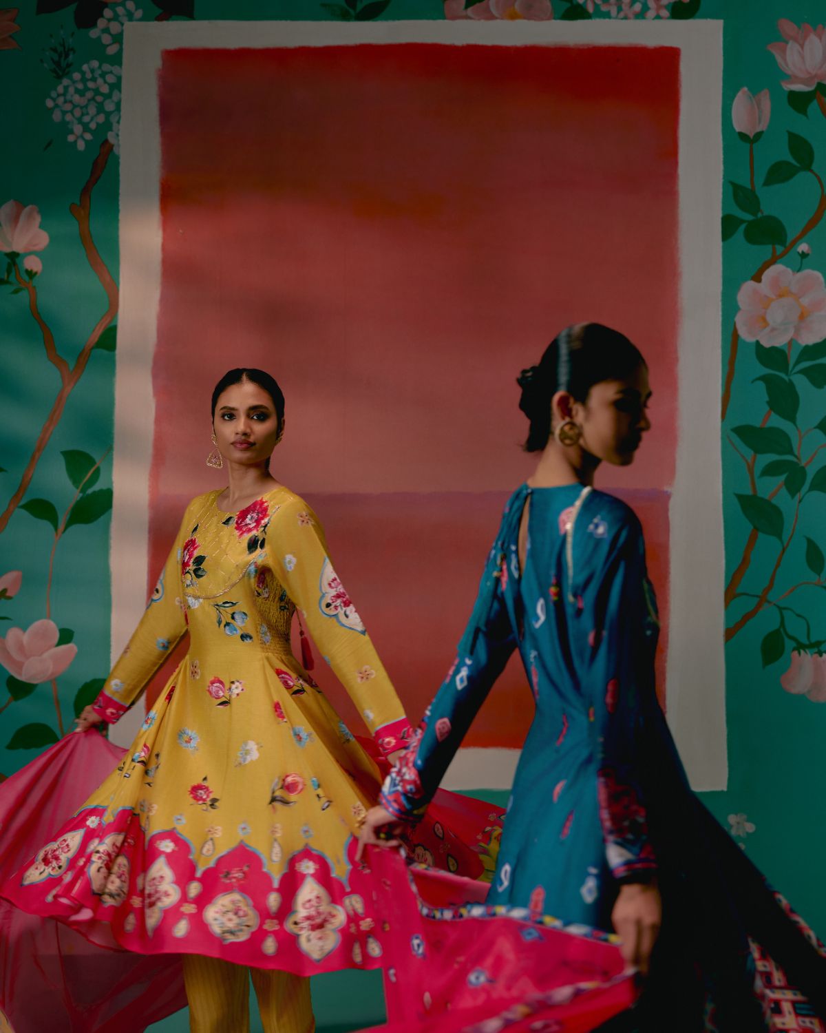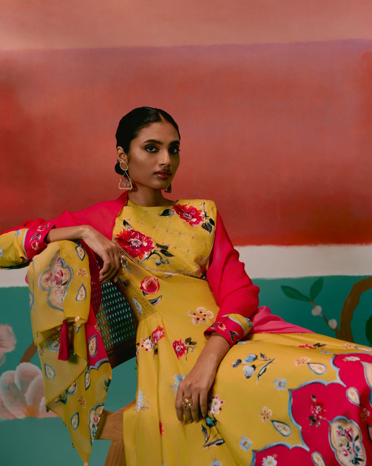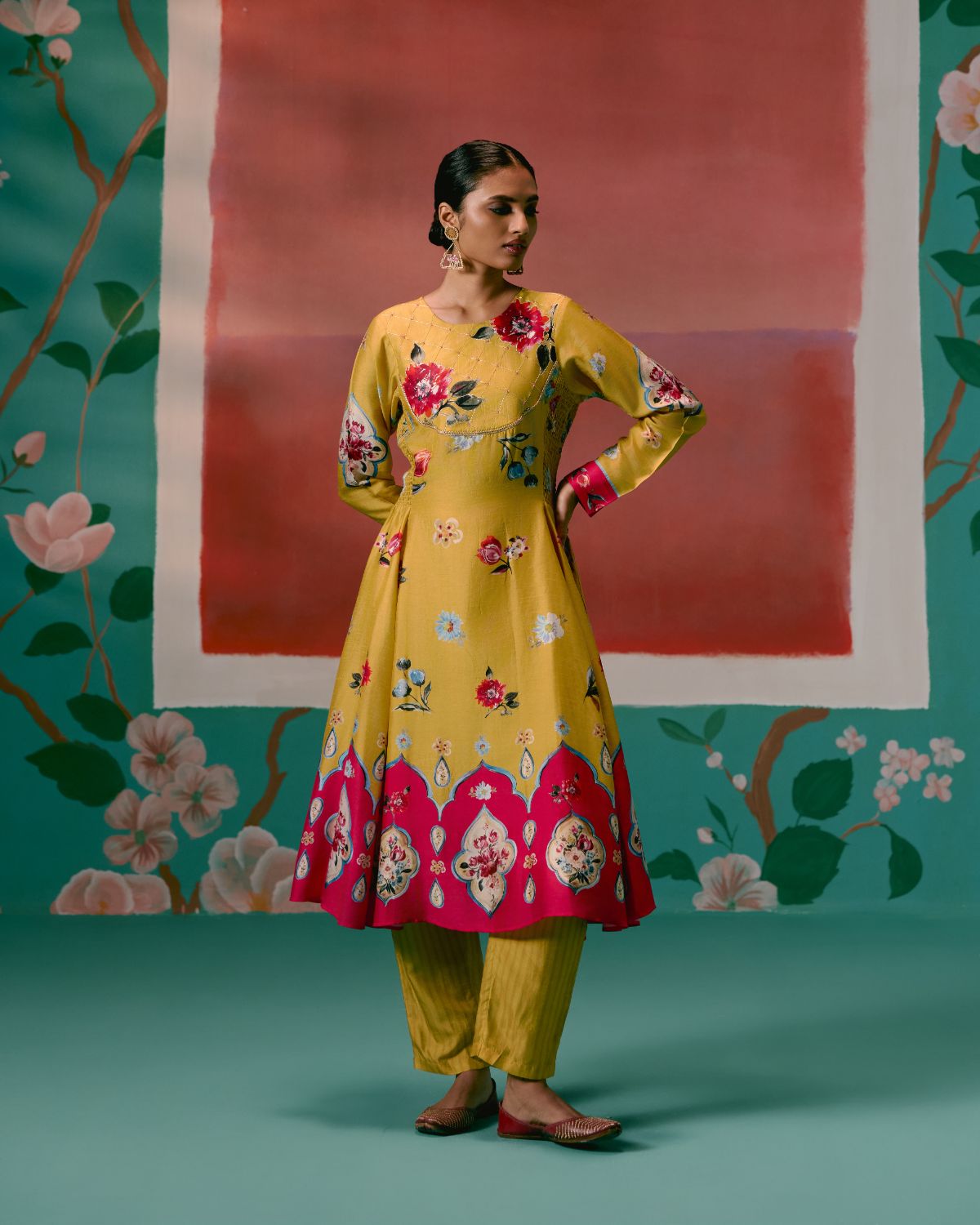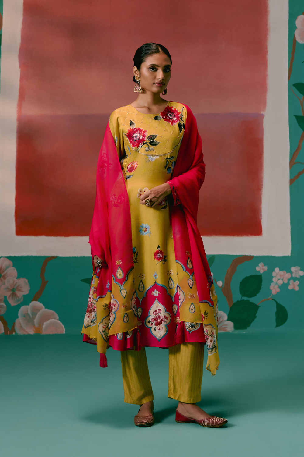 Graceful and festive, the Mustard & Pink Floral Anarkali Set is designed to make an effortless statement.