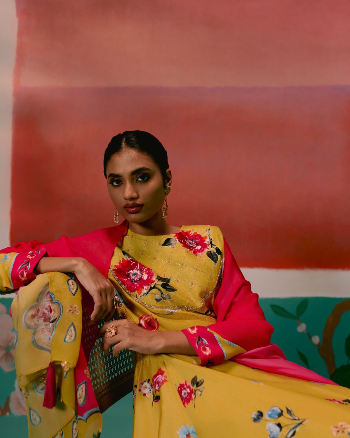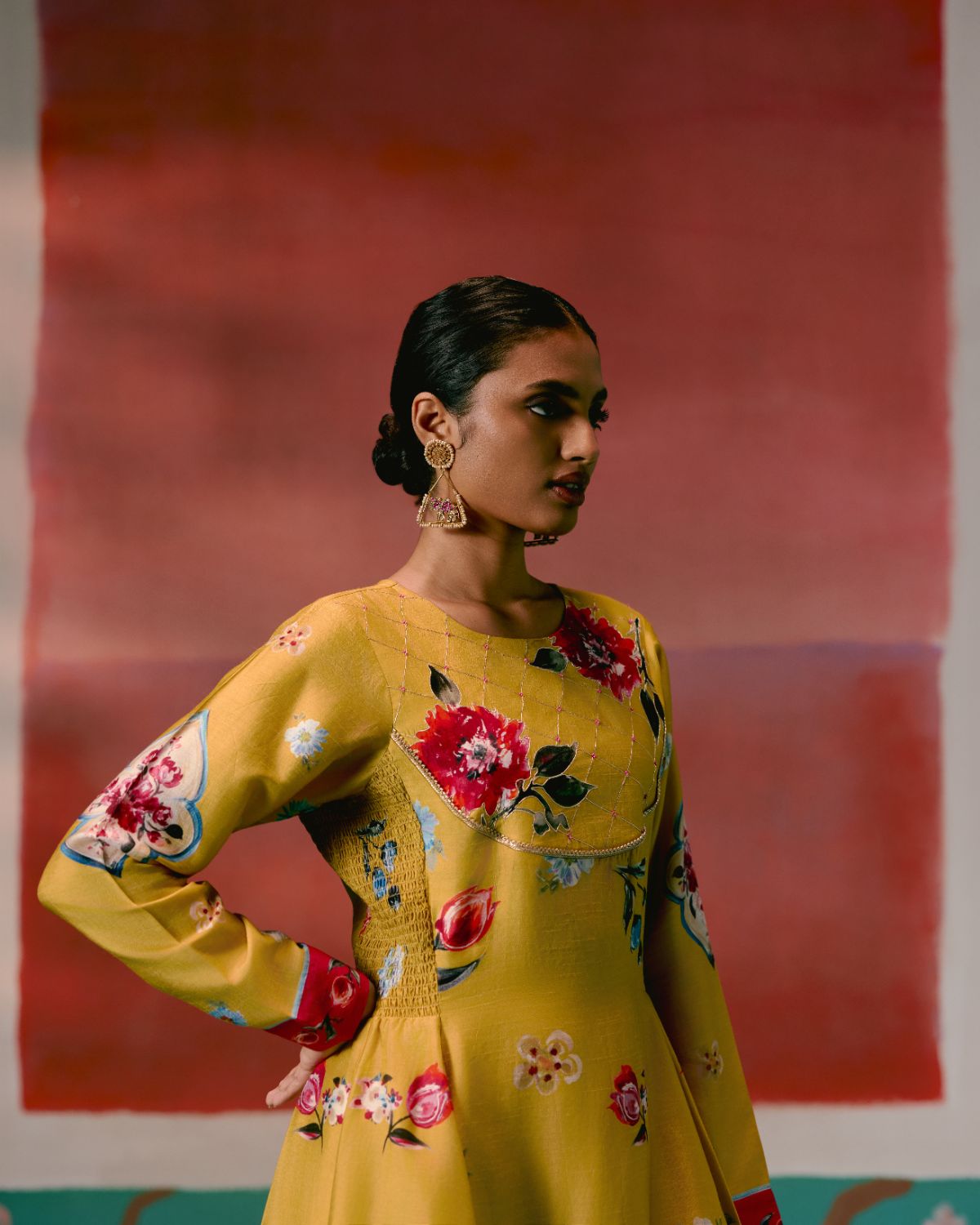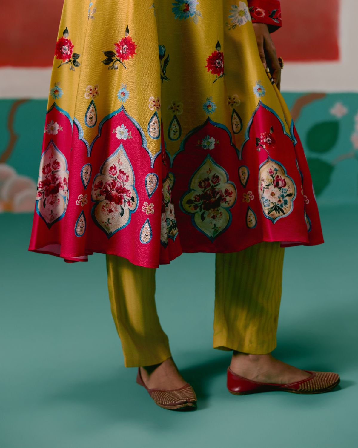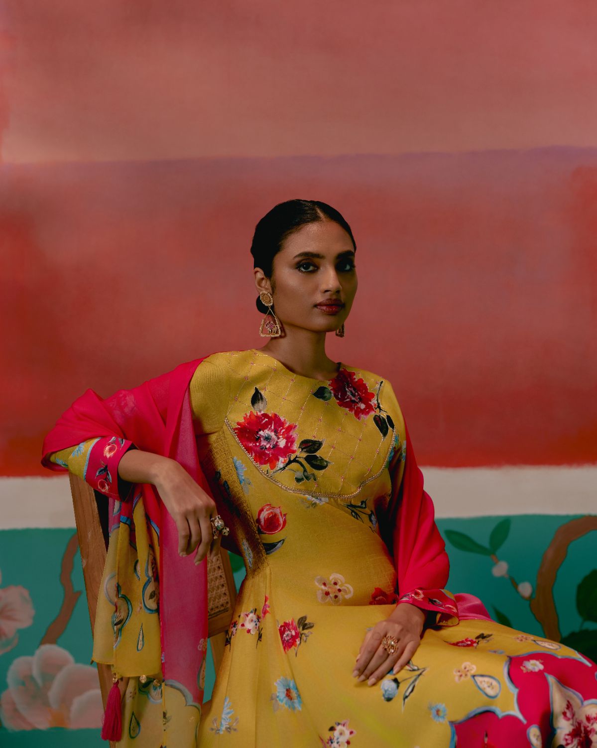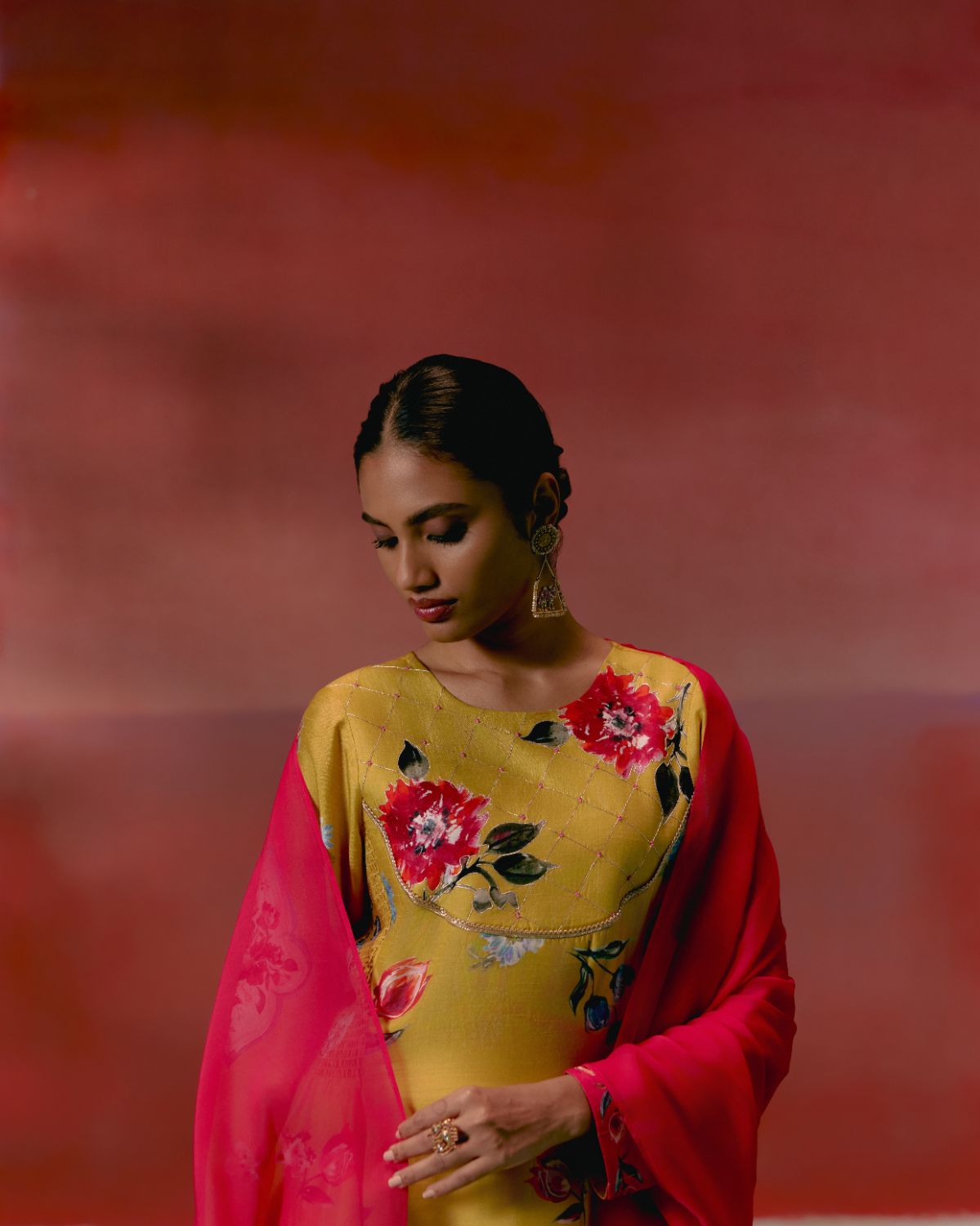 Graceful and festive, the Mustard & Pink Floral Anarkali Set is designed to make an effortless statement.