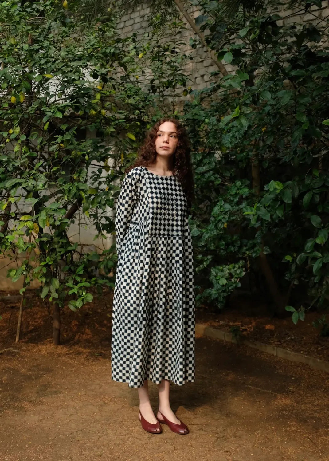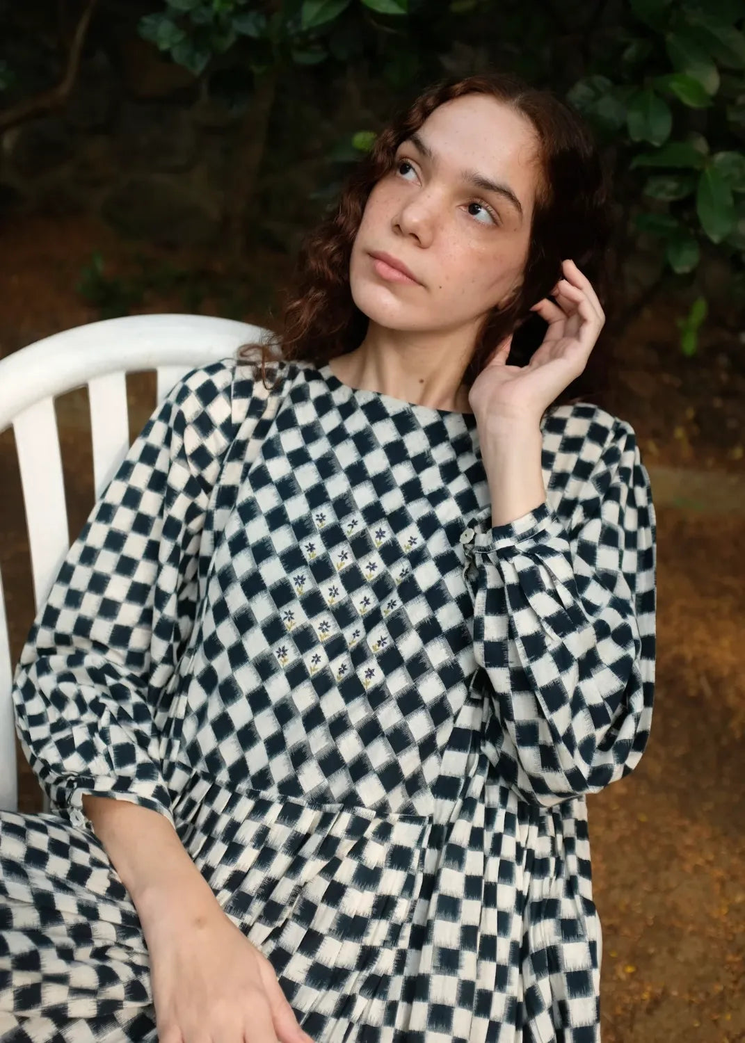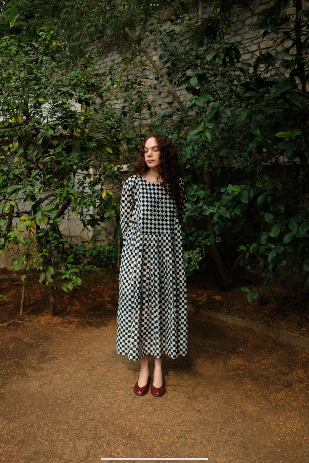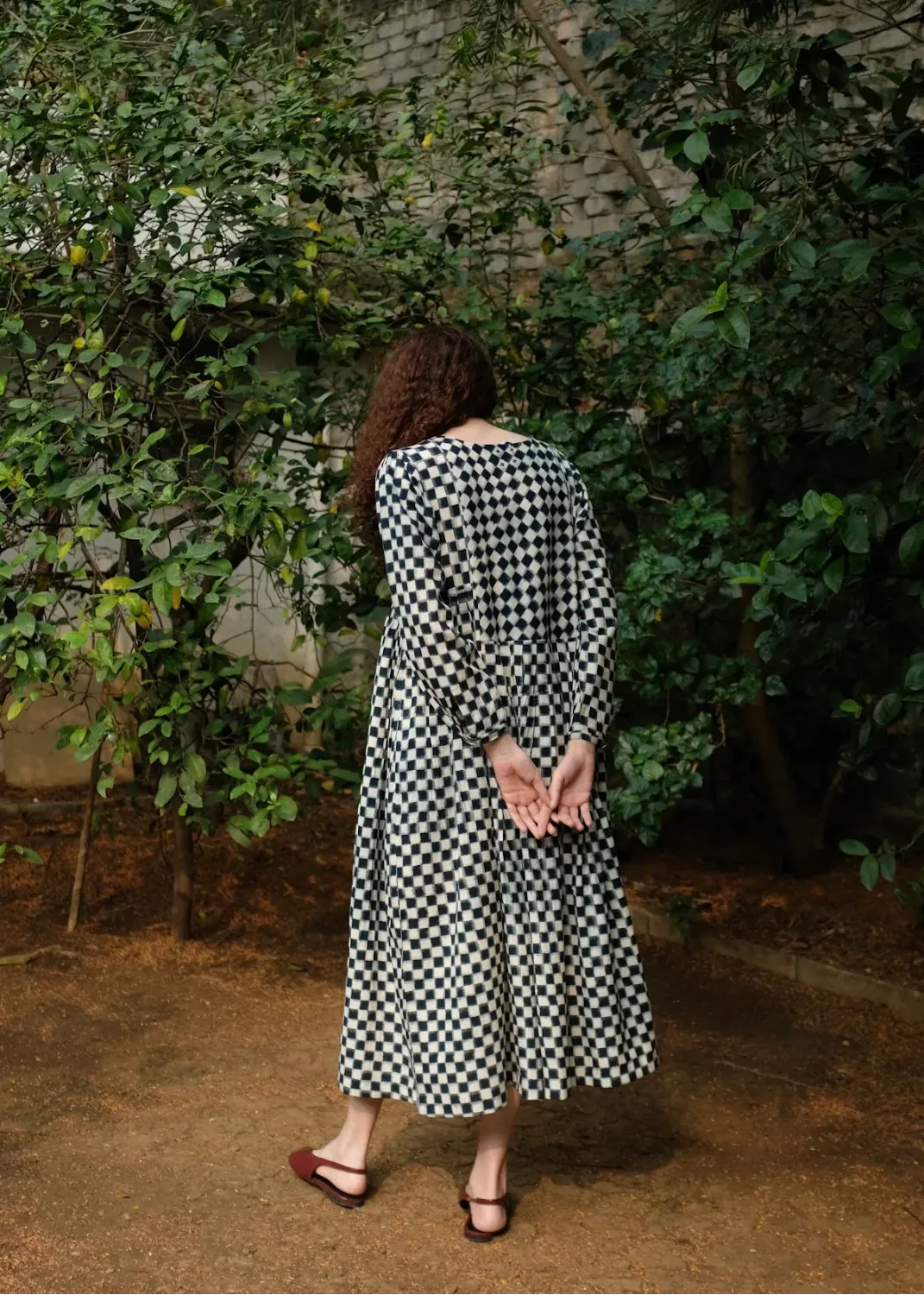 Our classic silhouette is back again with a subtle twist, of knife pleats instead of the usual gathers cut from the softest medium-weight handwoven double Ikat dyed using organic Indigo dye. It is adorned with chic floral embroidery done by hand at the yoke and a small portion of the back.