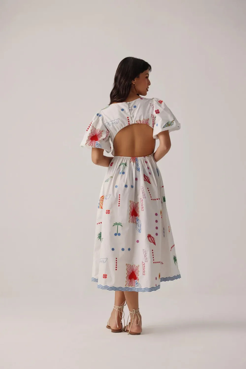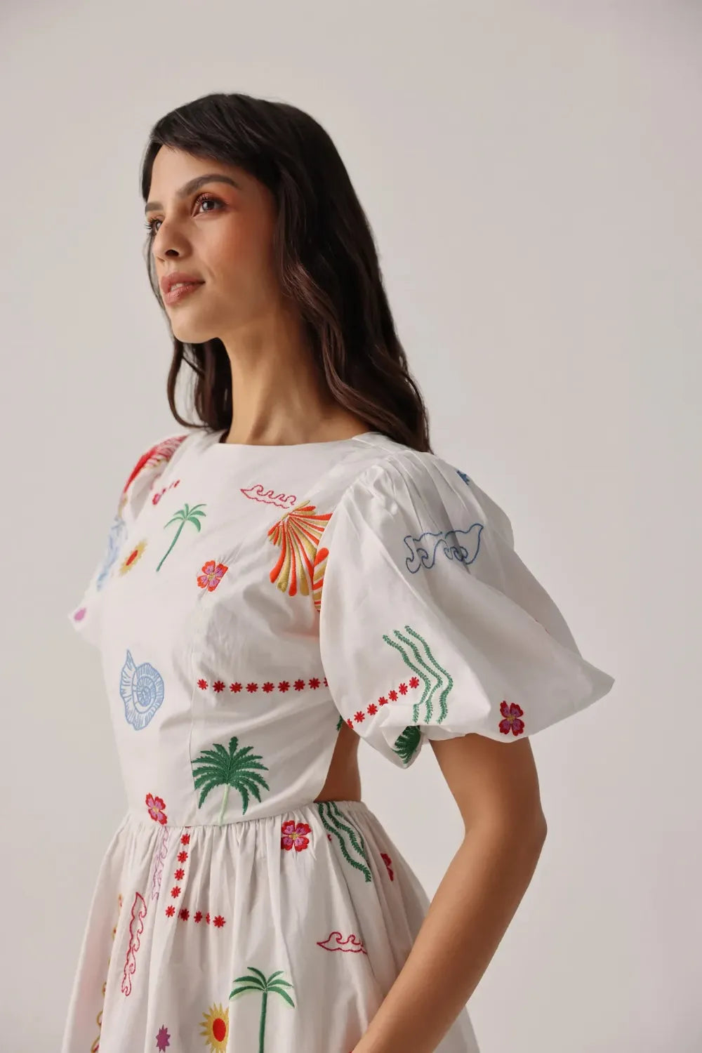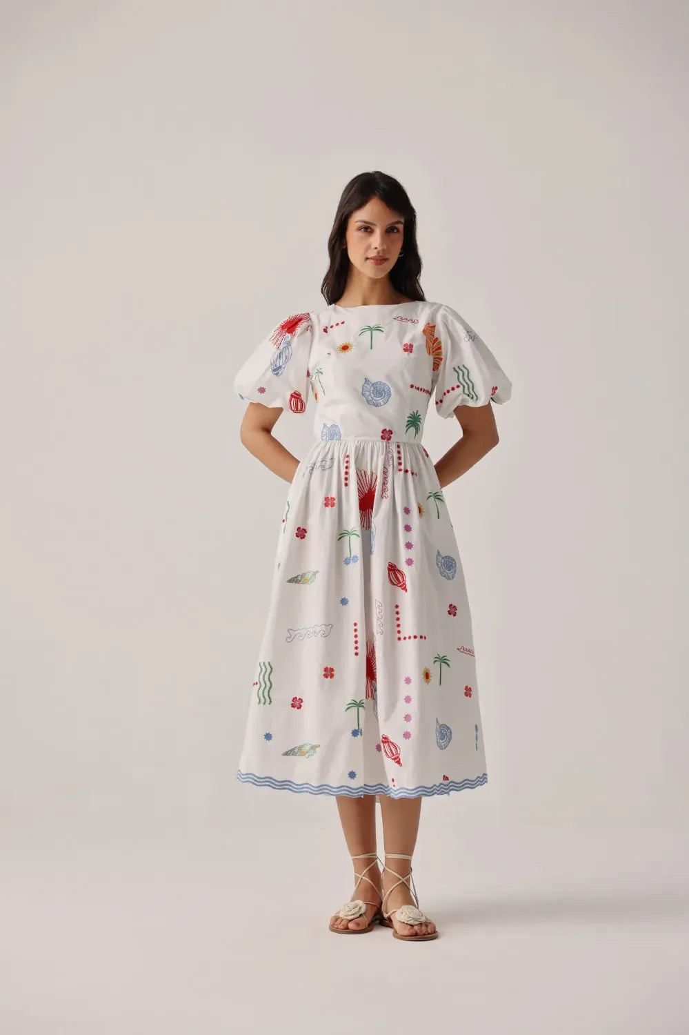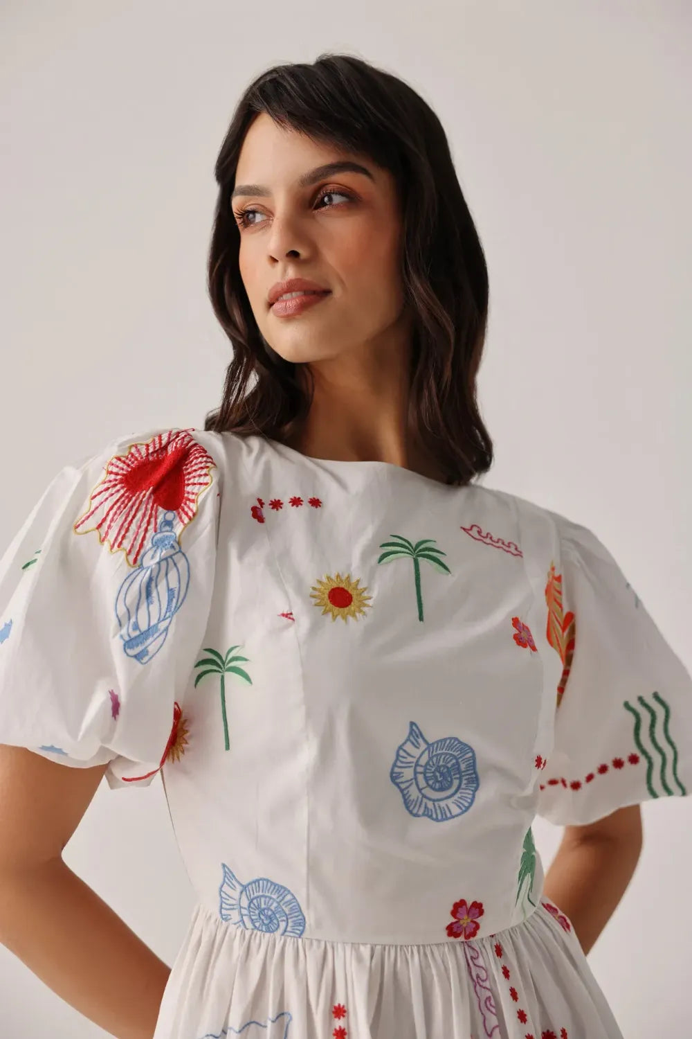 Midi dress silhouette with puffed sleeves and an