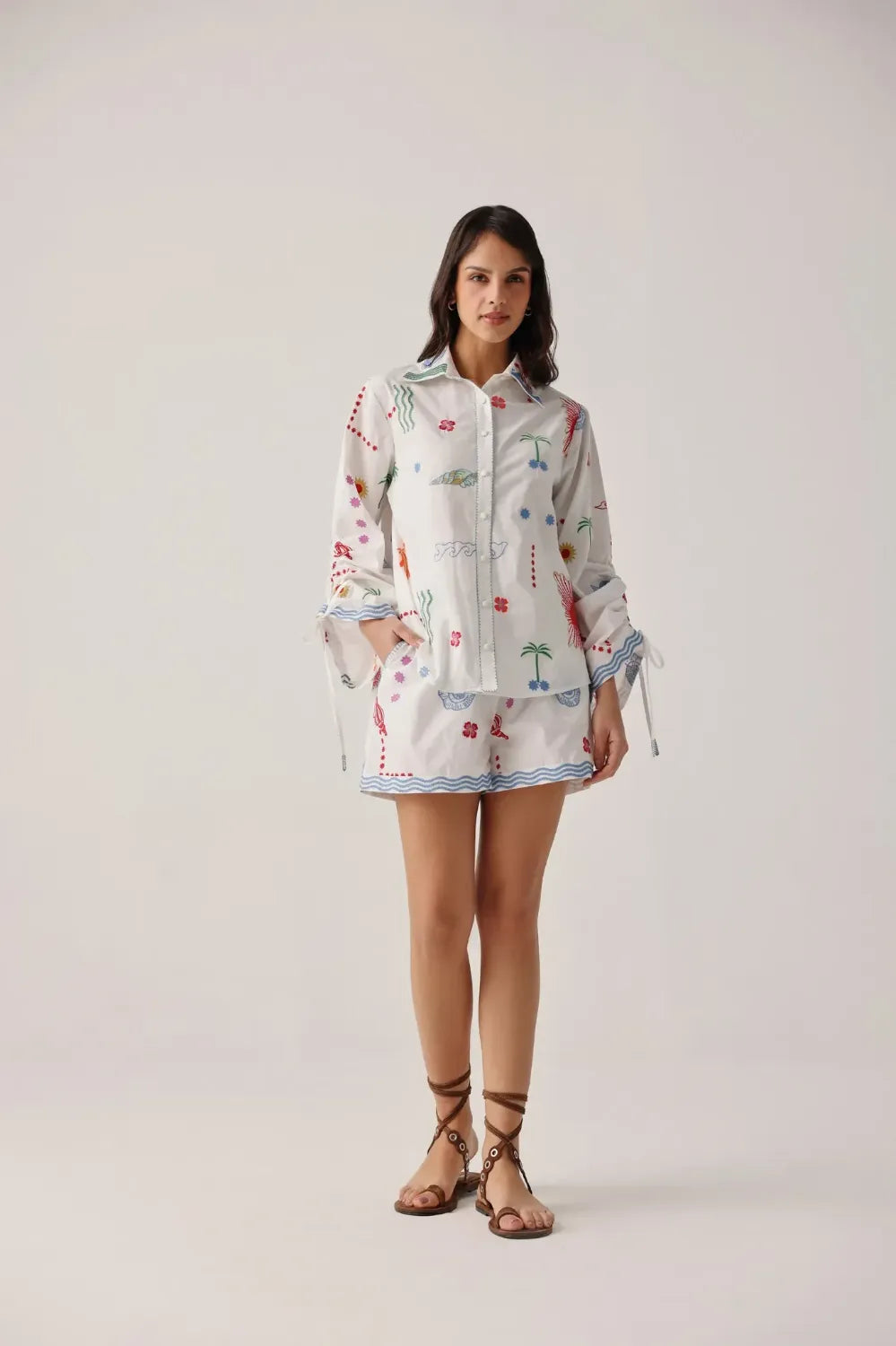Crafted in Giza poplin with all-over embroidered detailing