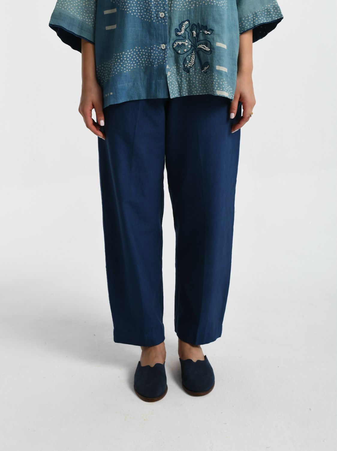 A perfect harmony of heritage craftsmanship and contemporary elegance, Fayra features a relaxed silhouette that drapes effortlessly, flattering the figure while ensuring all-day comfort. Designed for both utility and style, these pants accompany you seamlessly from completing daily tasks to stepping into an evening gathering with friends or family.
