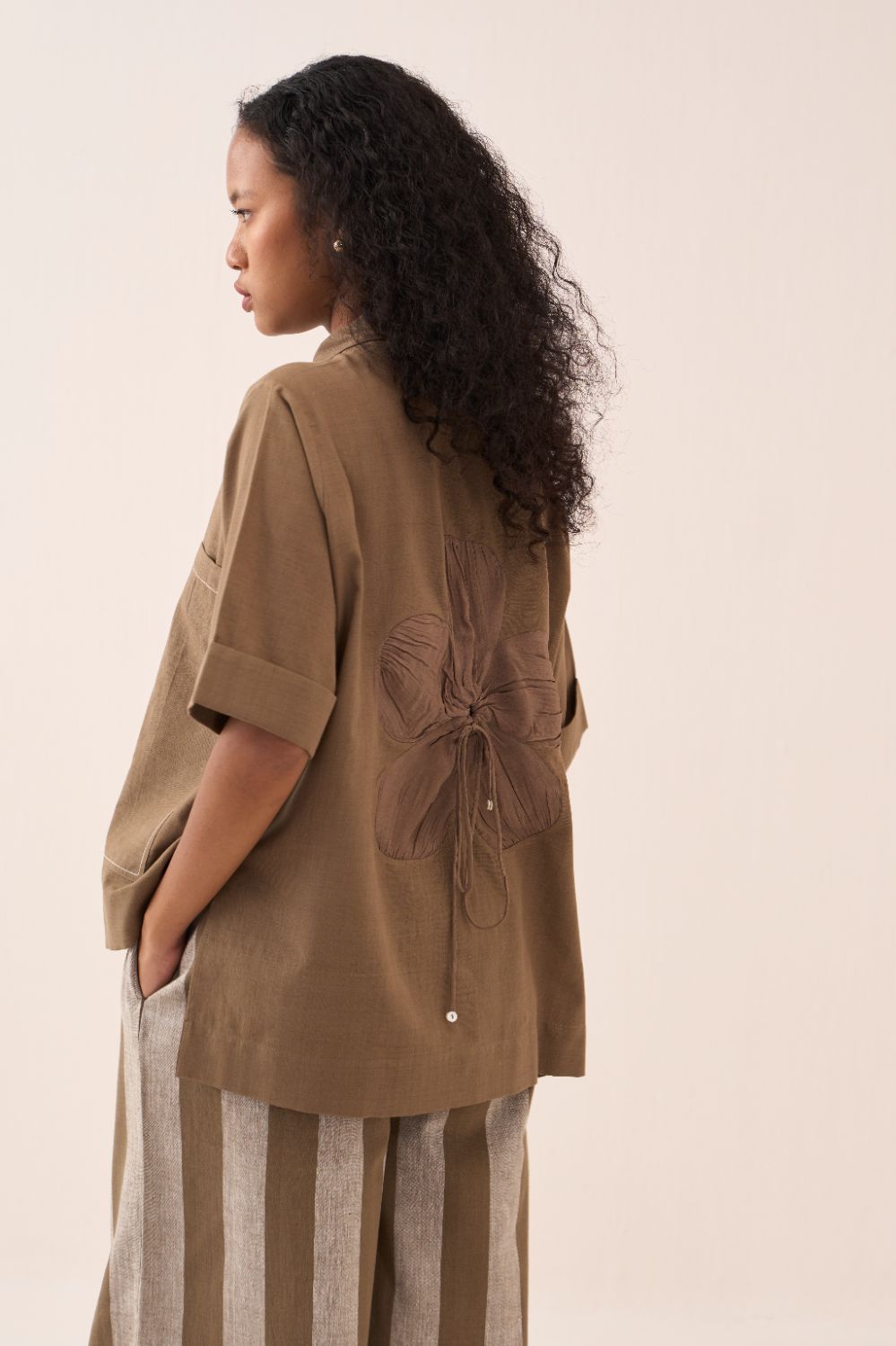 Back Drawstring Flower Shirt