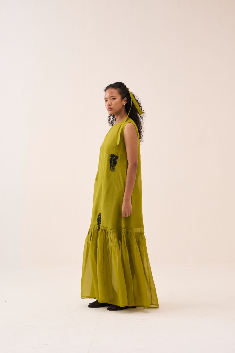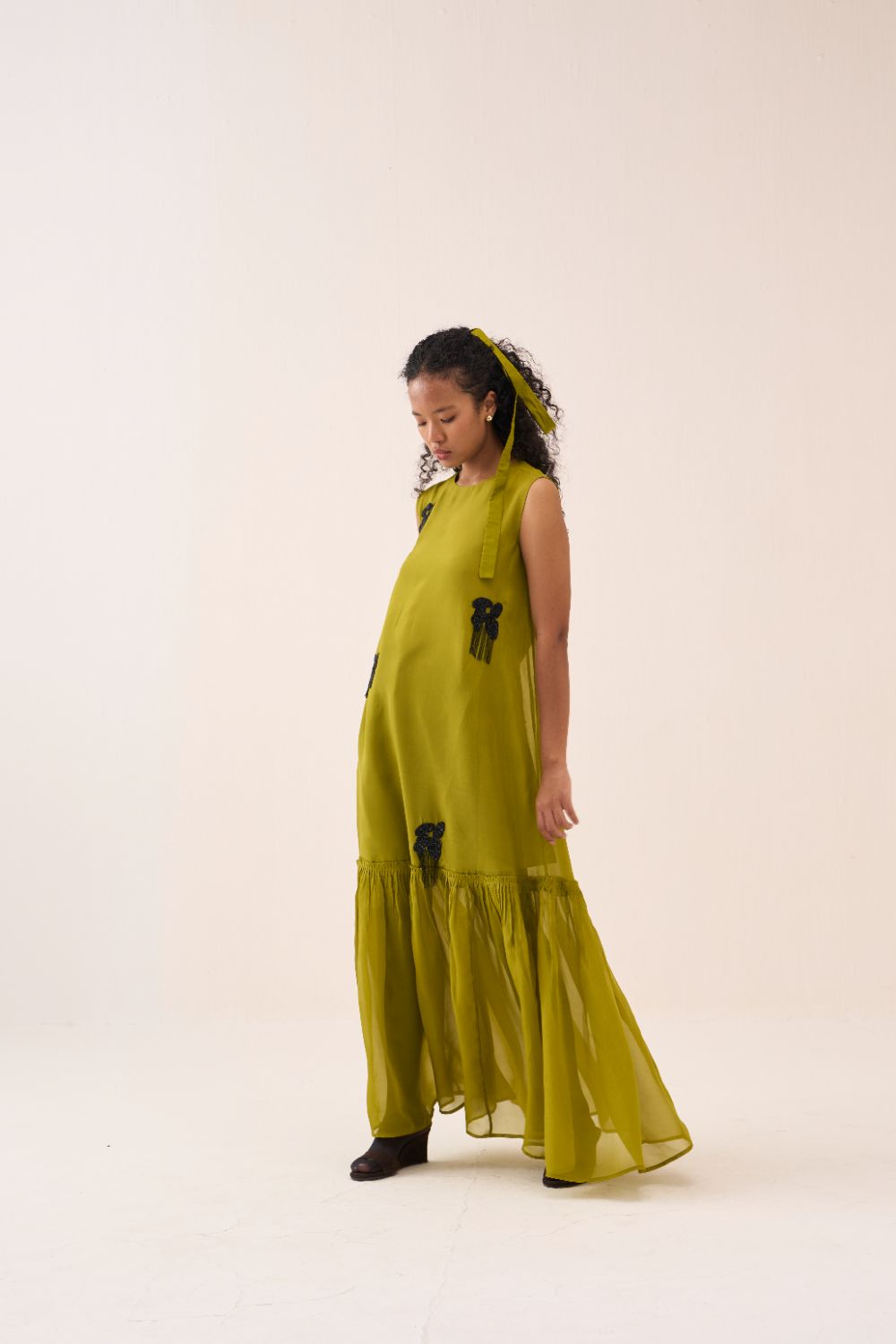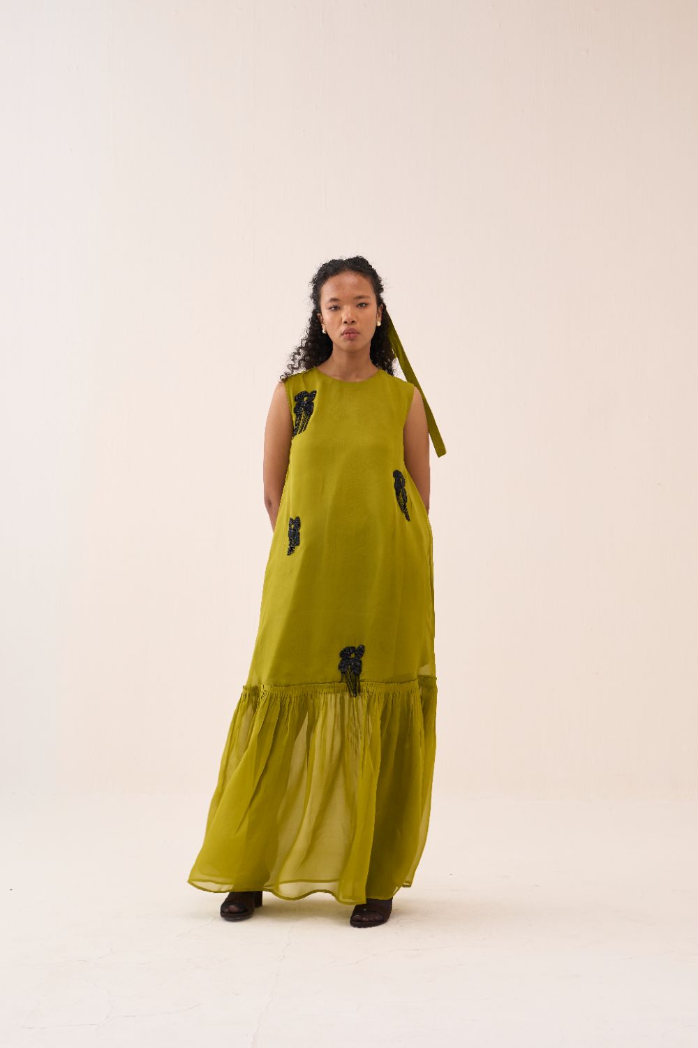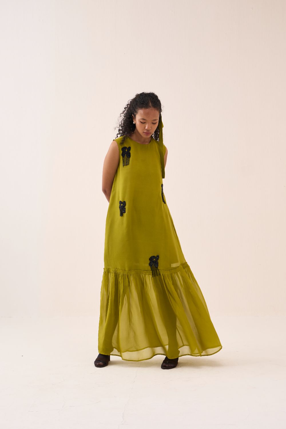 Beaded Sleeveless Bottom Frill Dress