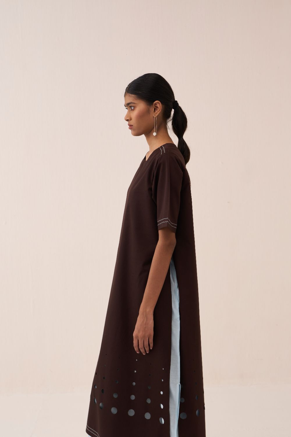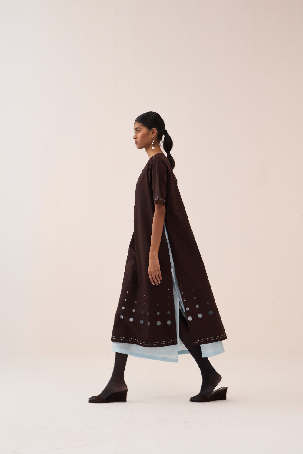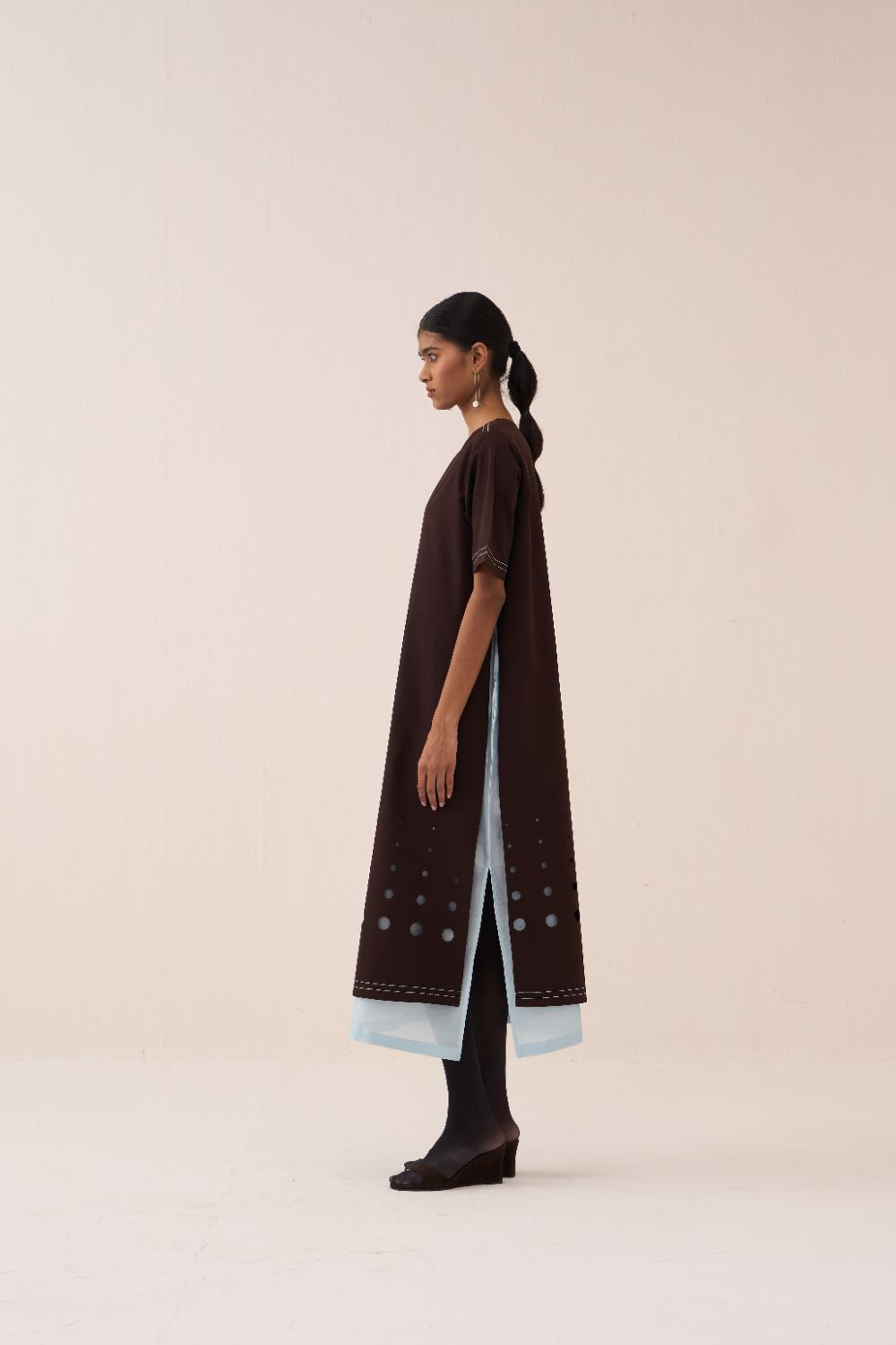 Clever cuts, asymmetric patterns, a neutral palette and simplicity of geometric details form the core aesthetic of the brand. Their love for asymmetry and imperfection clearly reflects in their silhouettes and hemlines. The label is a modern mix of conceptual and wearable clothing which defies age bar as the ensembles exude comfort, more so with their signature anti-fit coords.