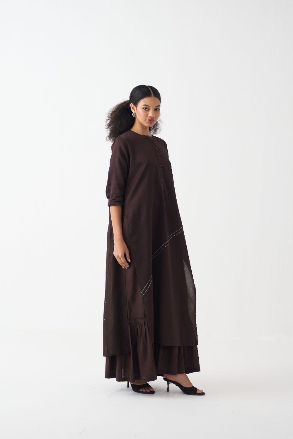 Clever cuts, asymmetric patterns, a neutral palette and simplicity of geometric details form the core aesthetic of the brand. Their love for asymmetry and imperfection clearly reflects in their silhouettes and hemlines. The label is a modern mix of conceptual and wearable clothing which defies age bar as the ensembles exude comfort, more so with their signature anti-fit coords.