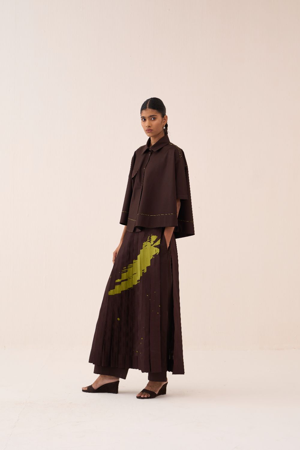Clever cuts, asymmetric patterns, a neutral palette and simplicity of geometric details form the core aesthetic of the brand. Their love for asymmetry and imperfection clearly reflects in their silhouettes and hemlines. The label is a modern mix of conceptual and wearable clothing which defies age bar as the ensembles exude comfort, more so with their signature anti-fit coords.