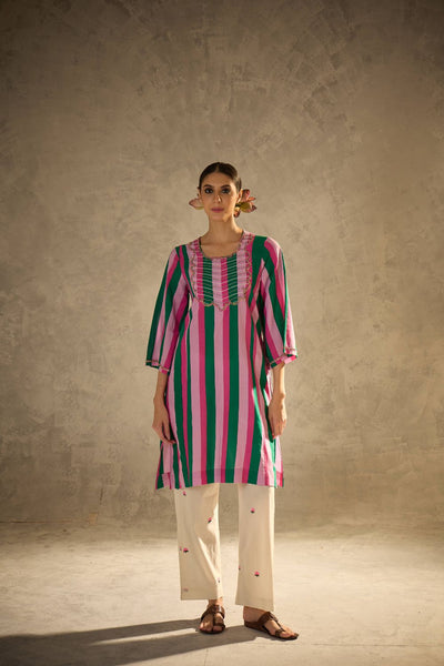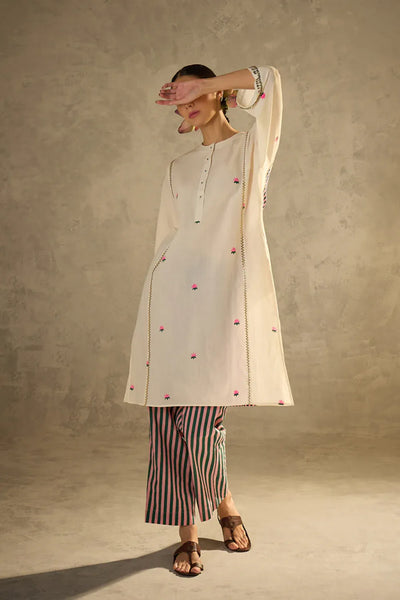 Explore the enchanting charm of Aavidi at Canvas and Weaves. Rooted in Dimple Bhatia's vision, this brand embodies timeless simplicity with a sustainable twist, perfectly aligned with the principles of mindful living. Specializing in festive wear for women, Aavidi crafts comfortable silhouettes for the modern woman who values both style and ease.