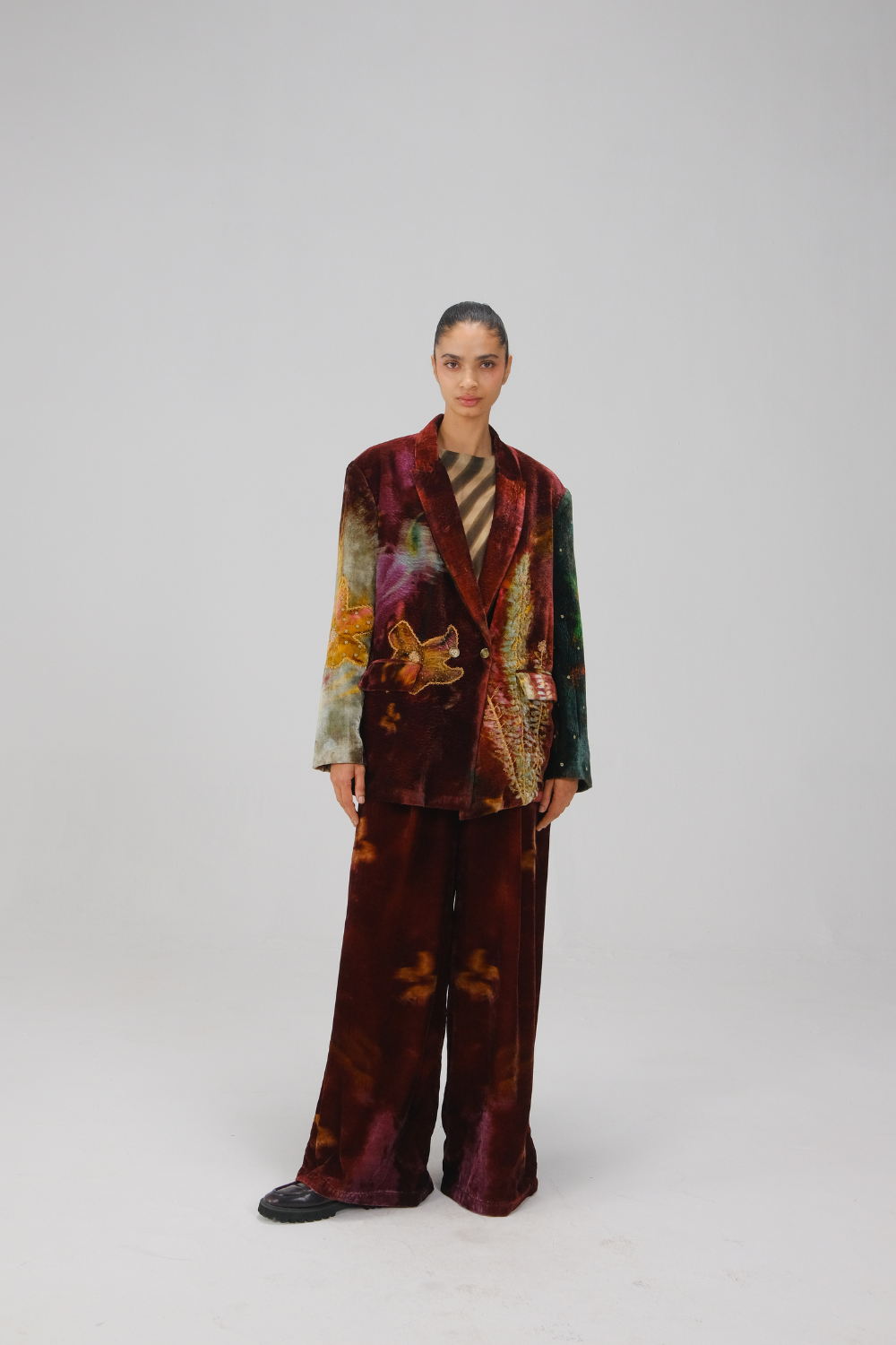 The Oversized set consists of an oversized blazer and lounge pants. The blazer features notched lapel collars and offers a perfect blend of comfort and style. The lounge pants are long and flared with a front pleat and an elasticated back.