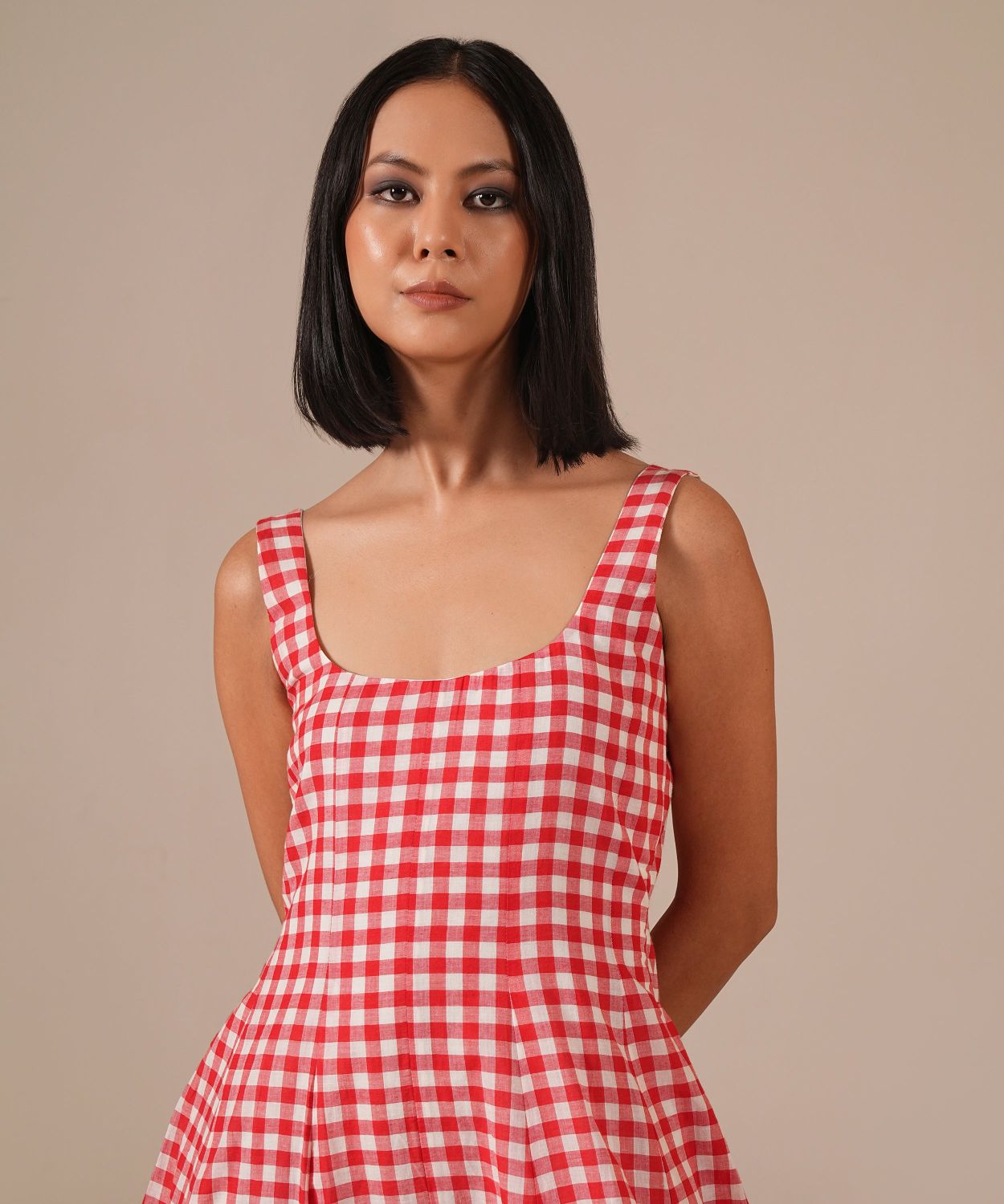 The jamdani fit-and-flare ensemble featuring a deep square neck dress with back zipper fastening, and kali/panel detailing, and a jamdani co-ord jacket that is perfect for your summer.