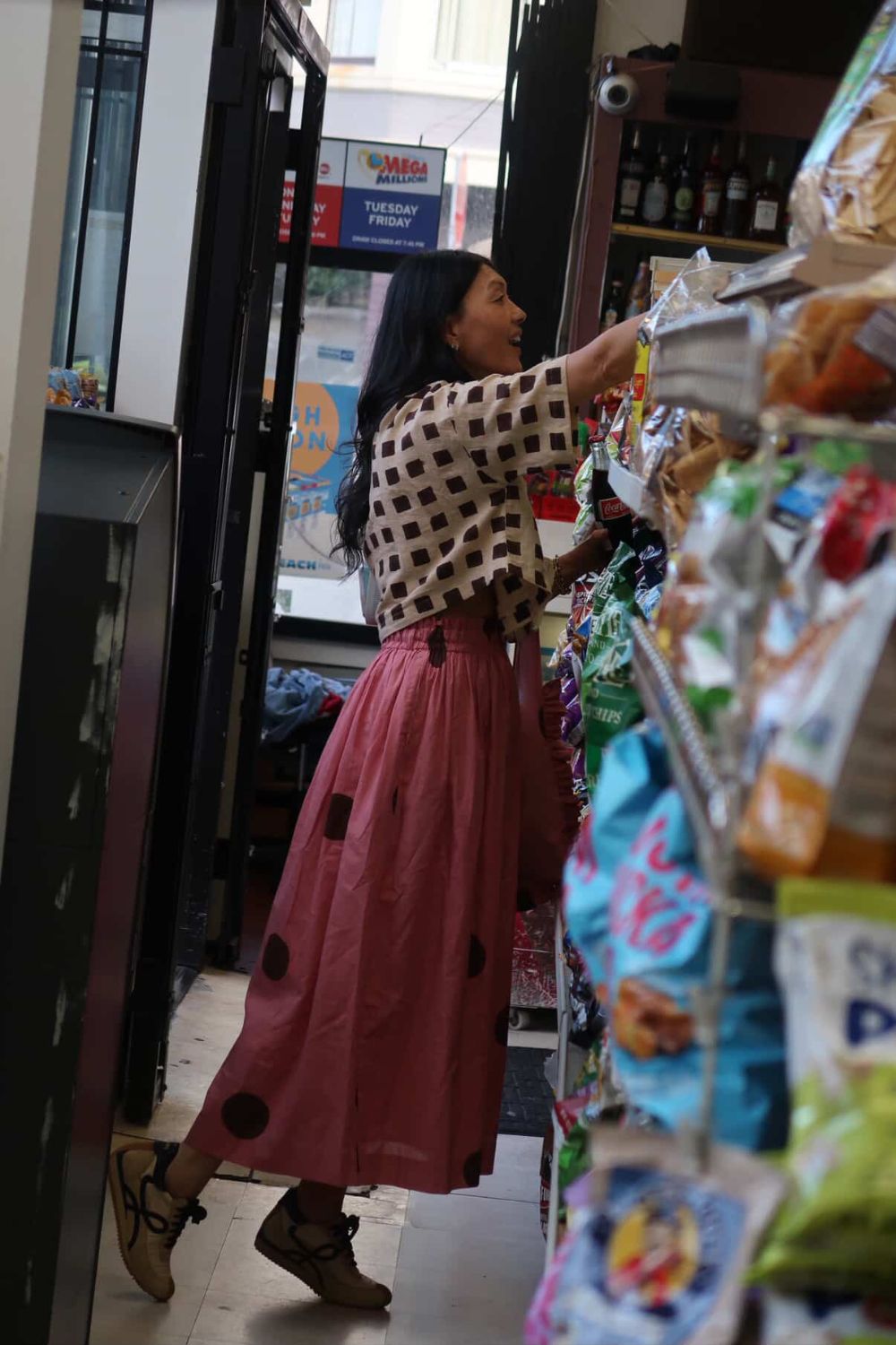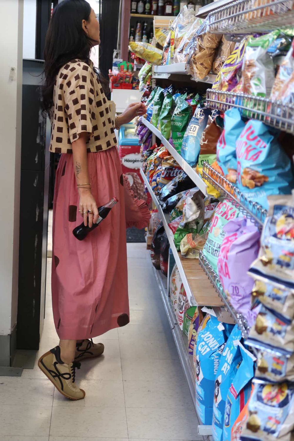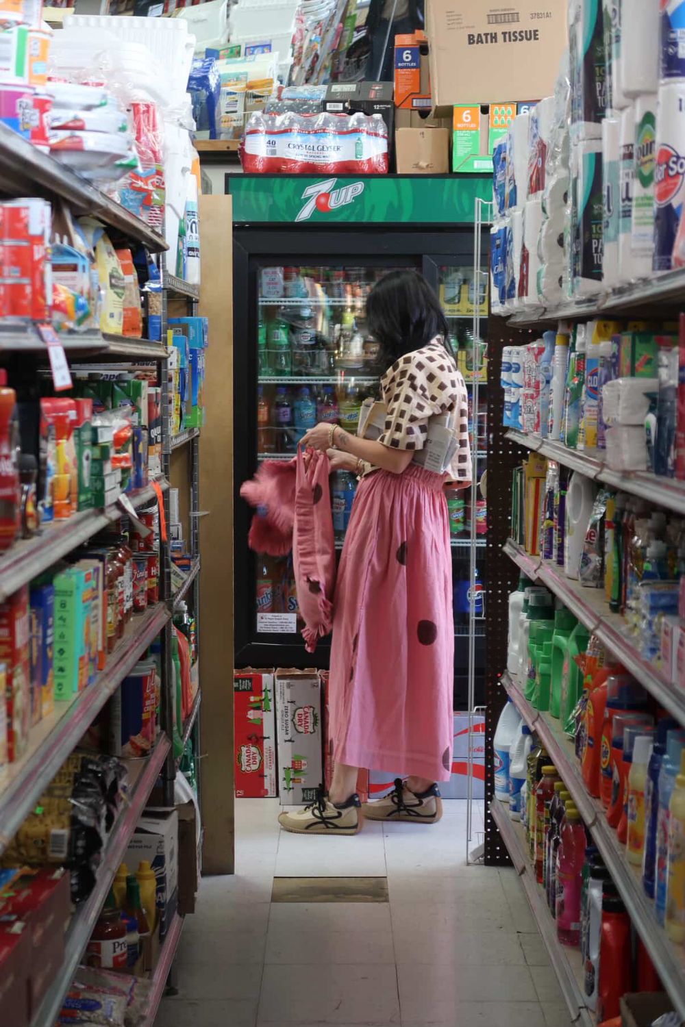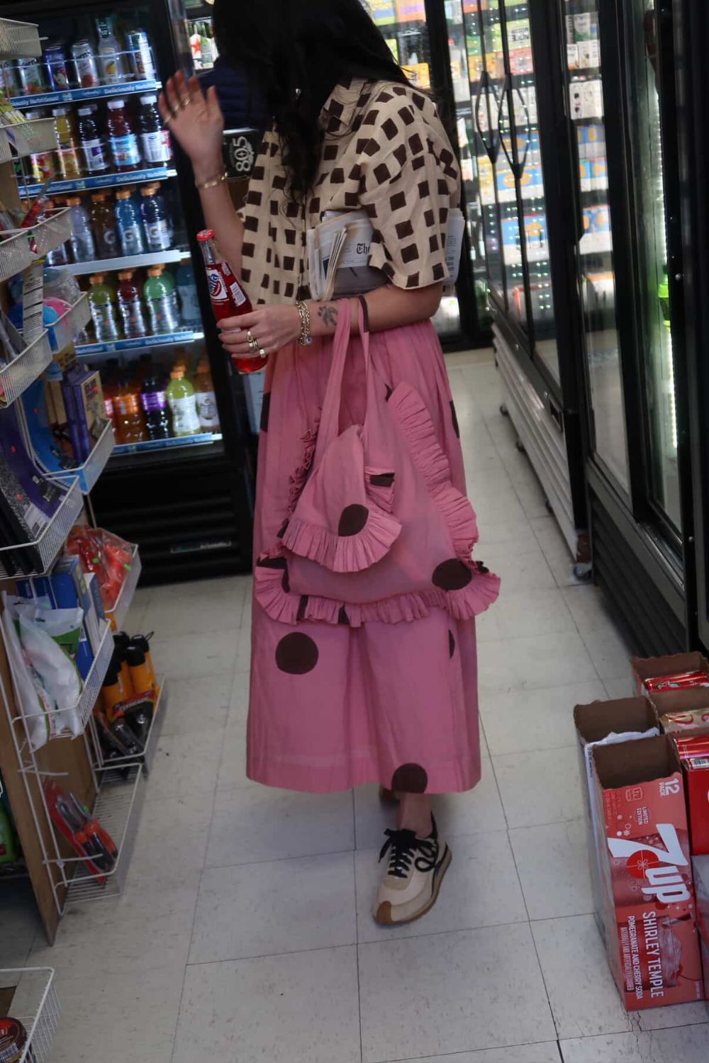 Designed in collaboration with Meredith Peck, this skirt captures playful elegance through hand-blocked cocoa dots printed on a soft, rose-pink organic cotton. Crafted with assumed azo-free dyes, it features a gathered full elastic waistband that offers an easy, flexible fit and a beautiful, flared A-line silhouette that moves effortlessly from casual daytime to relaxed evening wear.
