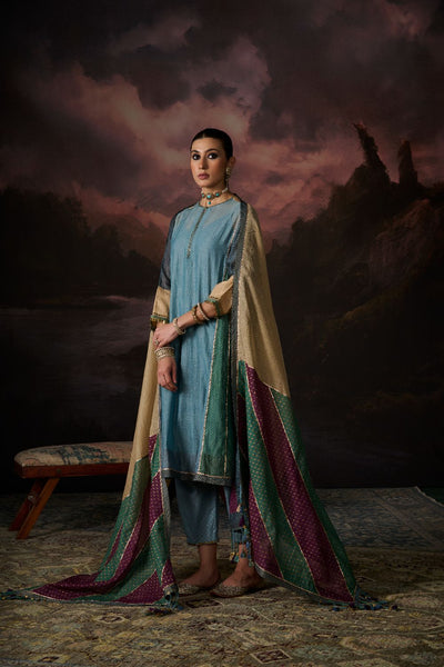 WENDY SCARF-IVORY WITH PURPLE BORDER