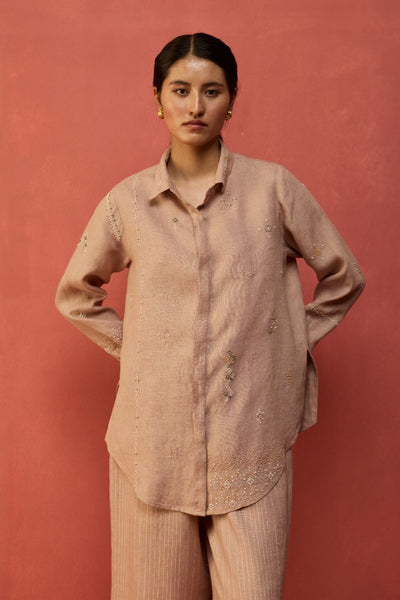 Kiera Cuban Collar Stripe Linen Shirt - Dusty Rose