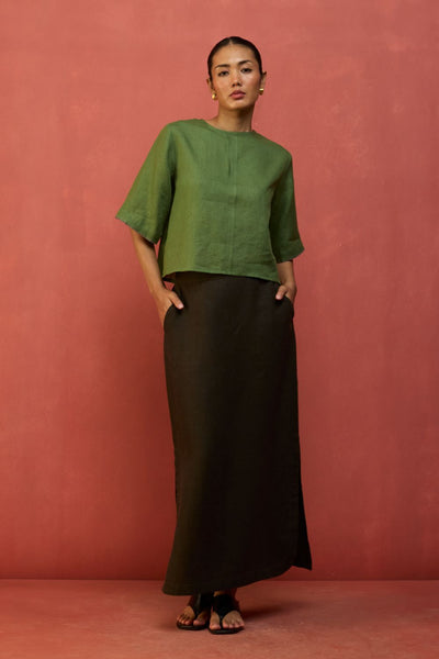 Mariko Cropped Linen Co-ord Set - Fern Green