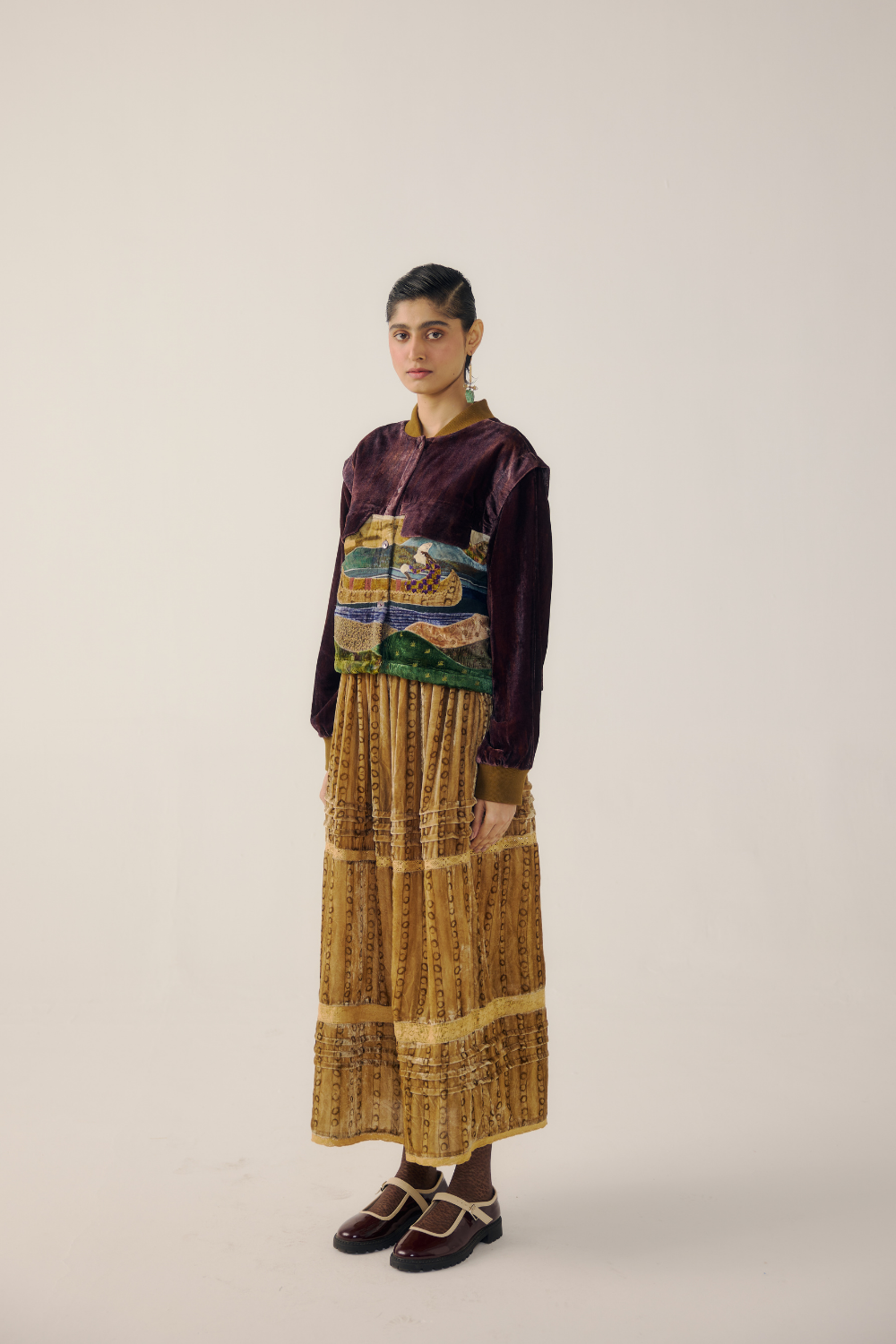 The Bert Set pairs the intricately embroidered Bert Jacket with the elegant Emily Skirt. Crafted from premium wool, the jacket showcases exquisite hand embroidery & applique and folk-inspired detailing, while the skirt complements it with a graceful silhouette—together creating a refined ensemble of warmth, artistry, and timeless charm.