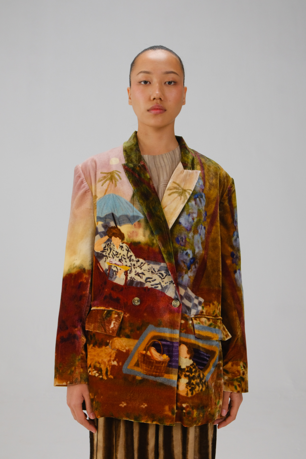 The Oversized Blazer in Lakeside print is a standout piece that effortlessly blends comfort and style