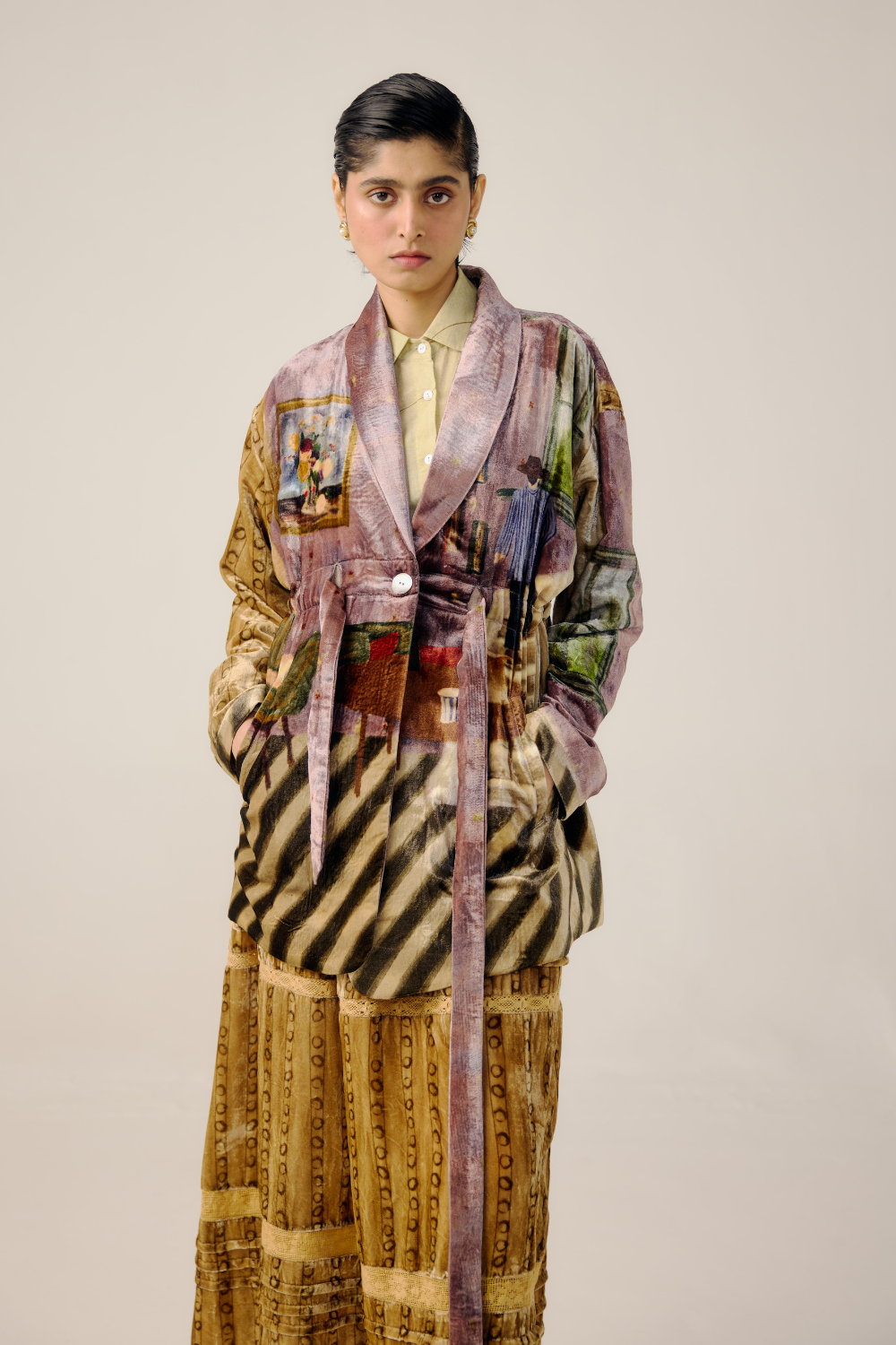 The Artist blazer comes with front adjustable belt and shawl collar provide a personalized fit and contemporary flair. Contrasting belt adds a touch of flare and allows you to cinch the waist.