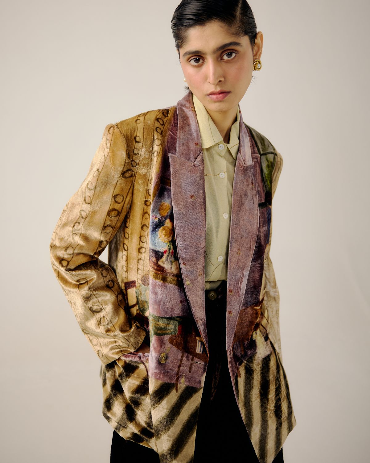 The Oversized Blazer in Living room print is a standout piece that effortlessly blends comfort and style