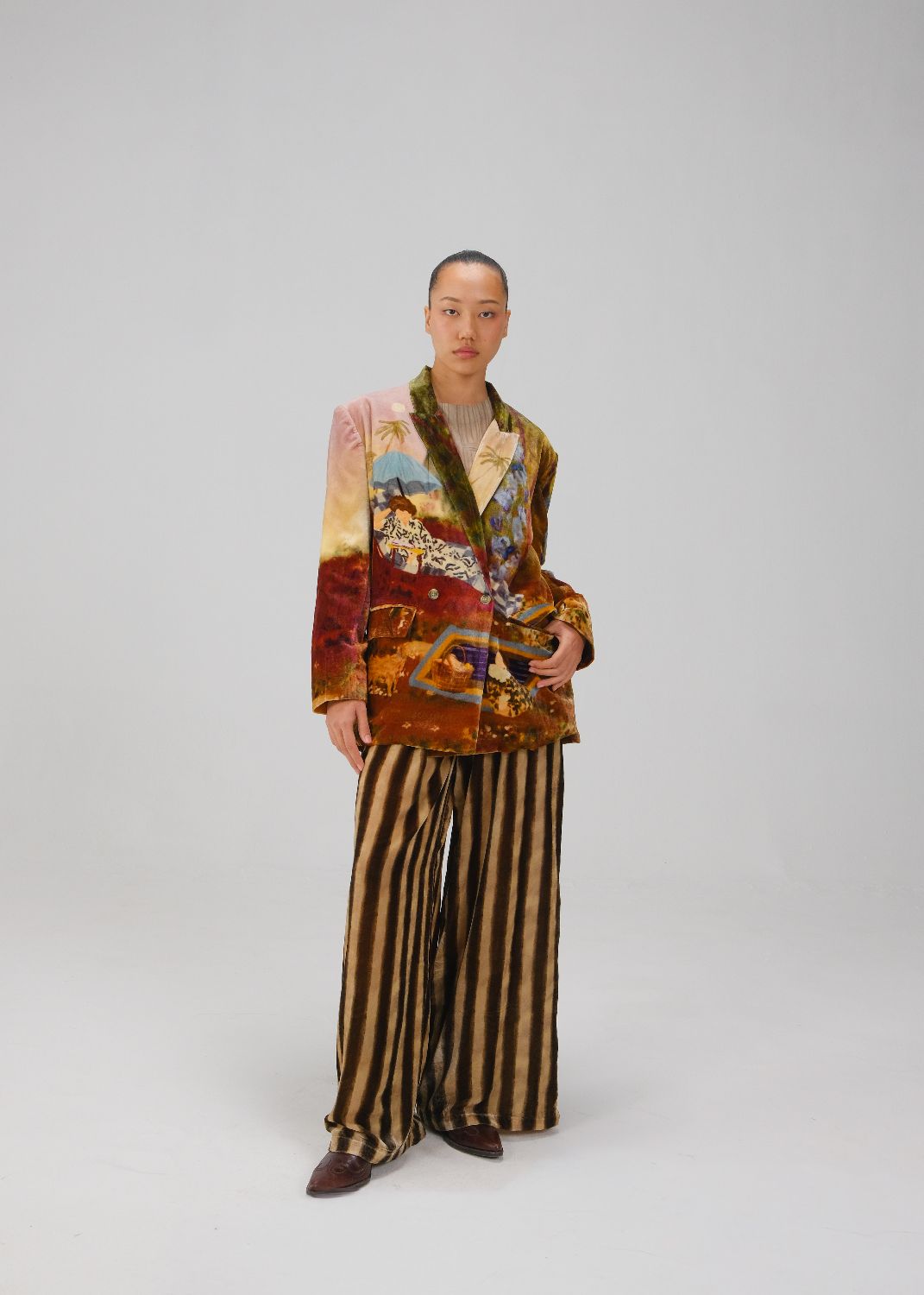 The Oversized set consists of an oversized blazer and lounge pants. The blazer features notched lapel collars and offers a perfect blend of comfort and style. The lounge pants are long and flared with a front pleat and an elasticated back.