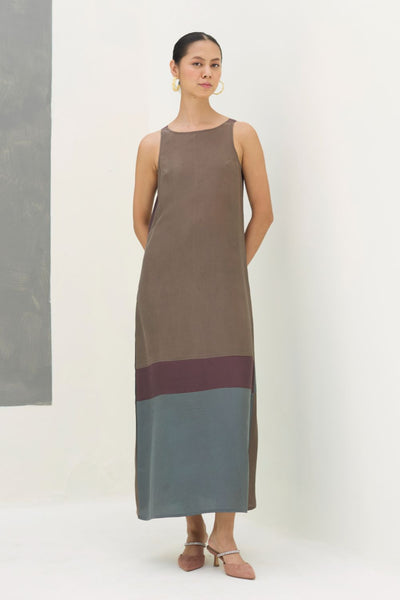 Nida Sleeveless Mulberry Silk Dress - Taupe Grey