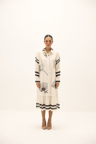 Fuchsia with Ivory Thread Embroidery Midi Dress