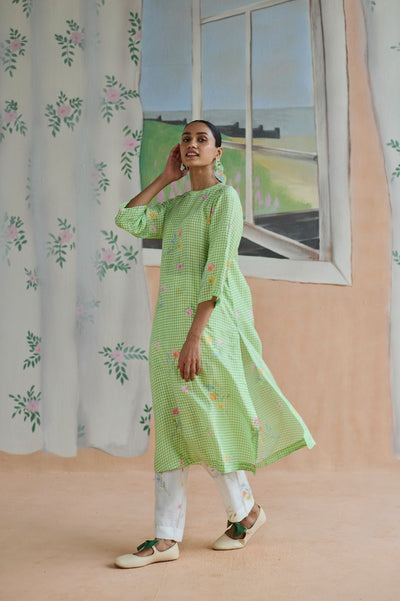 Gekka Lime mul cotton silk kurta set