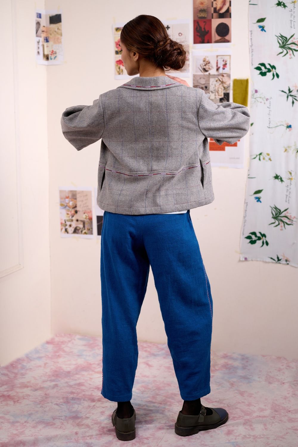 Product Detail: A timeless and versatile layer, this regular-fit jacket is crafted in recycled wool in a gray shade and thoughtfully enhanced with machine embroidery to add subtle texture and design interest. Designed with pockets and tuck detailing at the sleeves, it balances functionality with refined style. Perfect for casual outings or layering over staples, this jacket combines sustainable craftsmanship with everyday wearability.