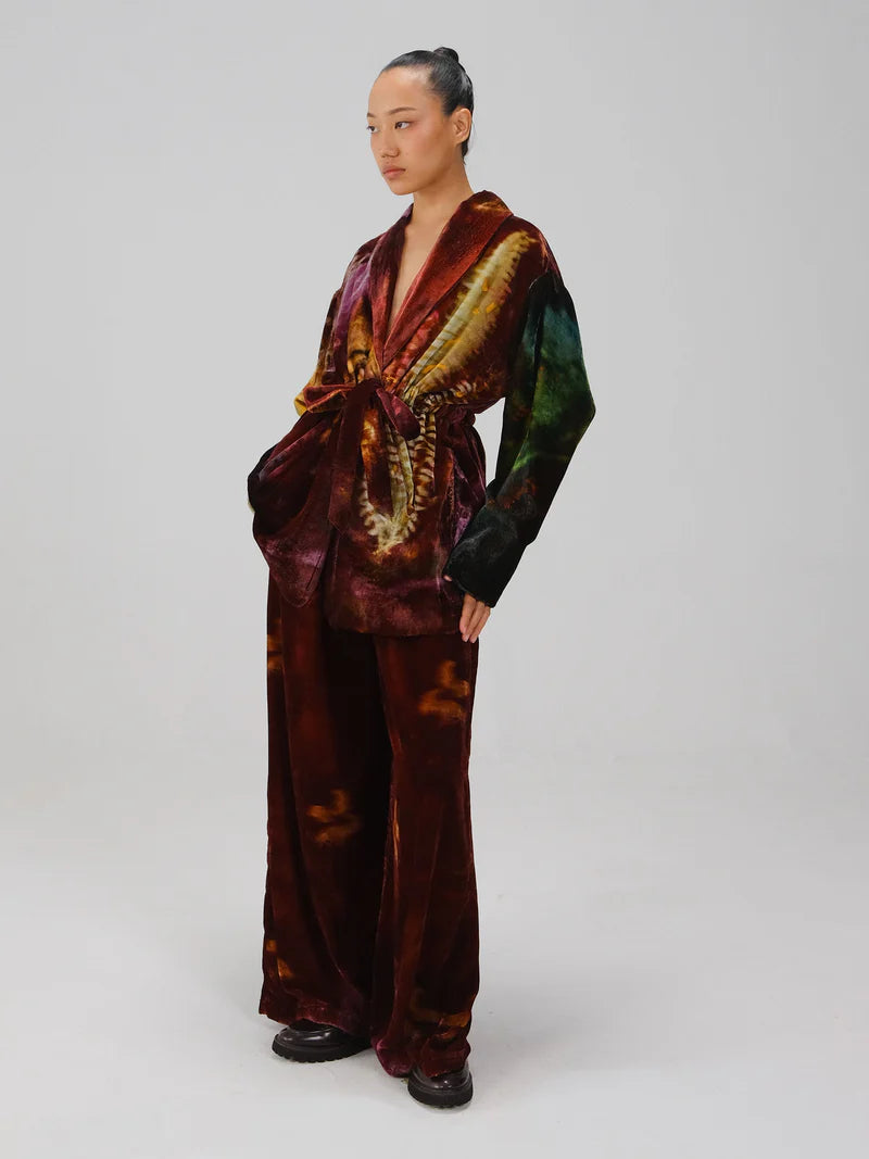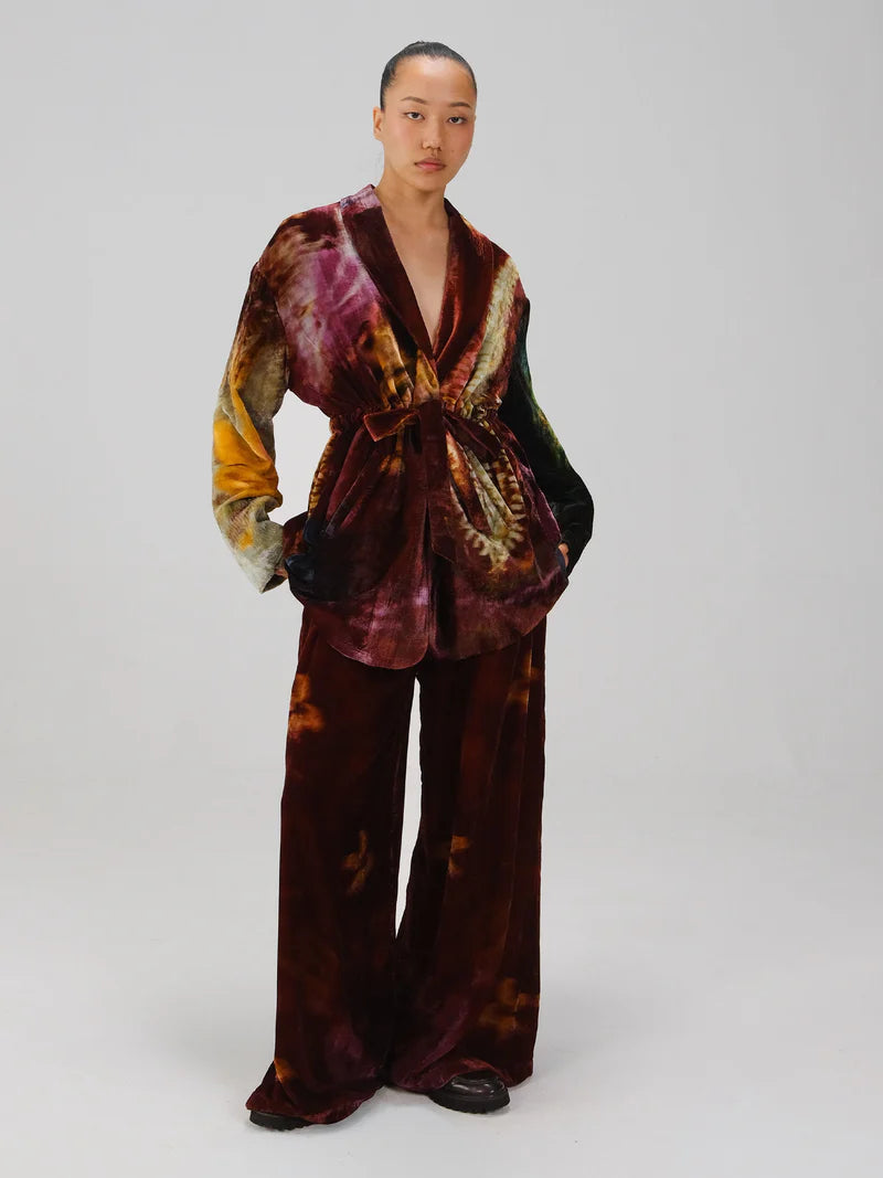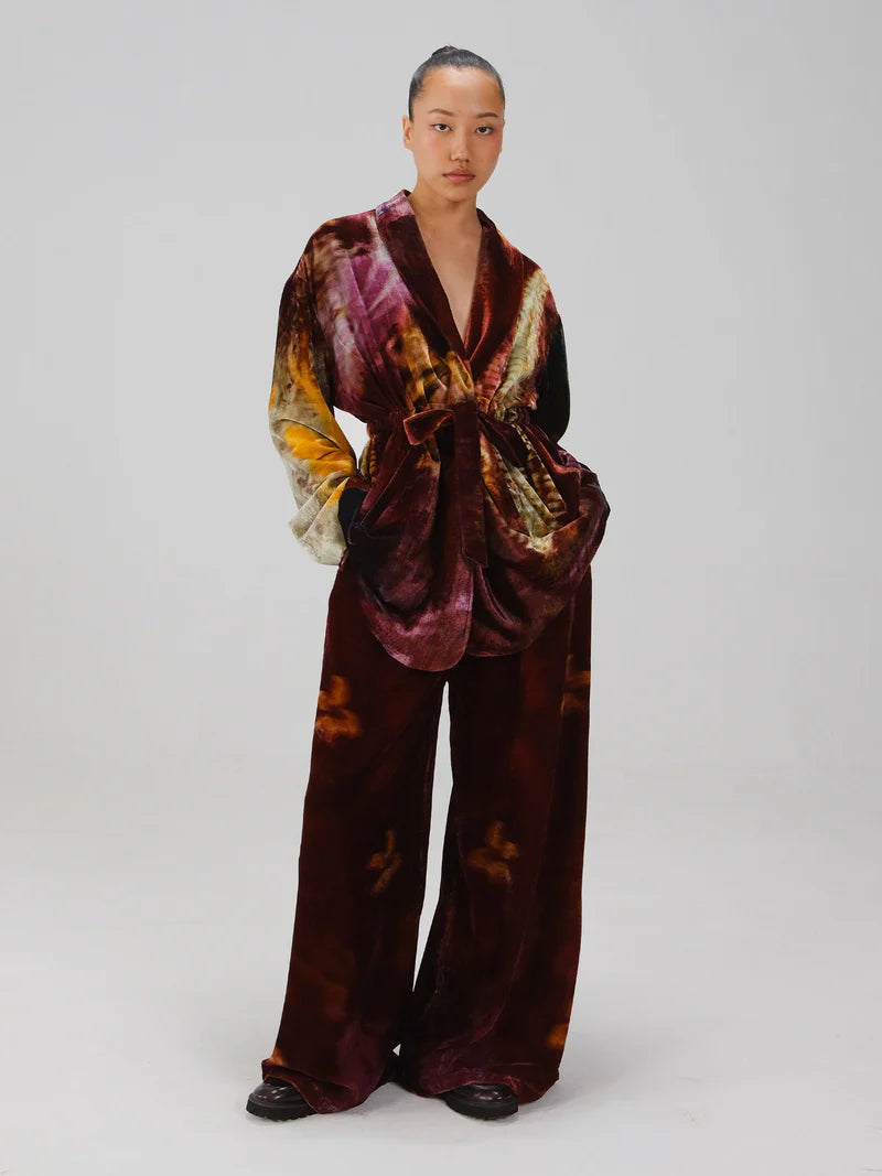 Elevate your look with The Artist Set, a two-piece co-ord featuring a free-size overlay jacket with an adjustable waist belt. Paired with velvet flare pants, complete with side seam pockets for style and practicality, this set combines effortless elegance with modern sophistication.