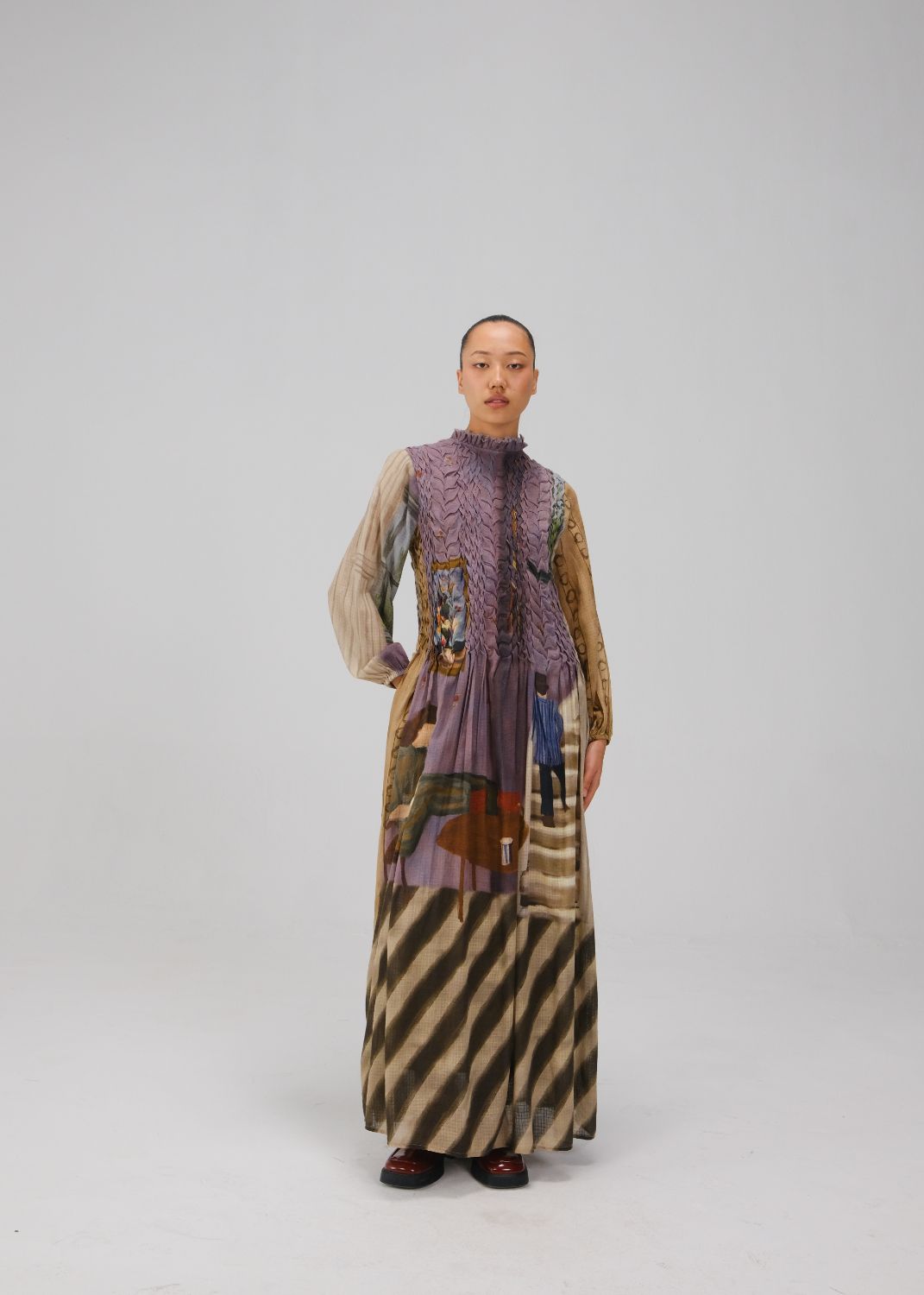 The June dress is classic maxi dress crafted from pure cotton in a charming living room print. Highlighting a hand-smocked yoke this dress also features a neck with a deep keyhole opening at the back