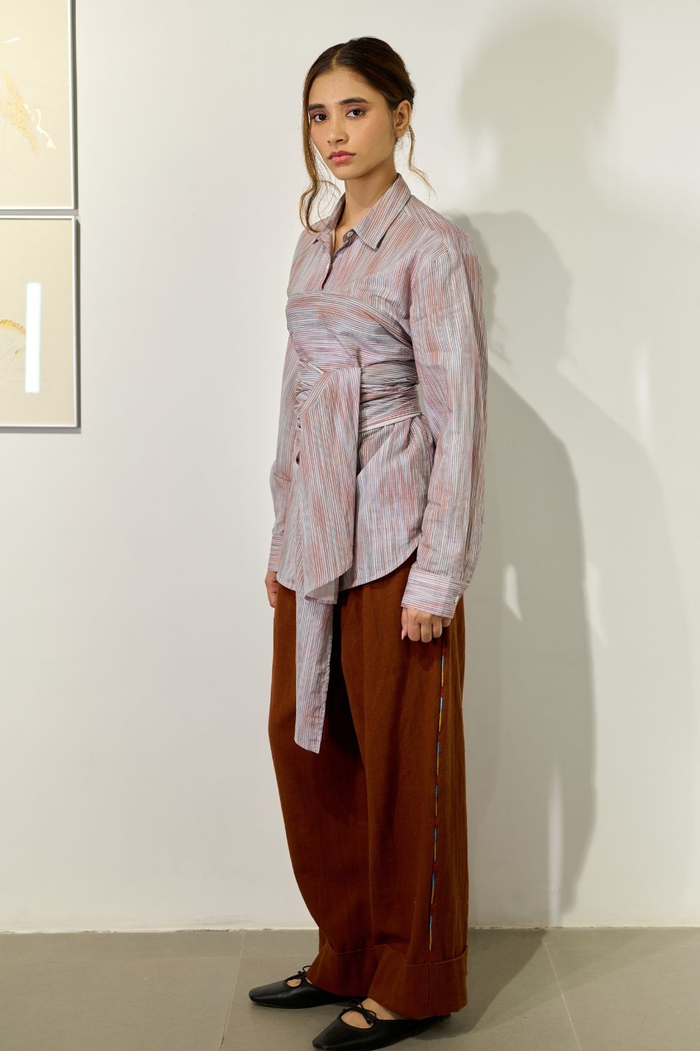 Description: Product Detail: A versatile and effortless piece, this collared top is crafted in soft modal fabric and features a button-front closure with a belted detail for a customizable fit. Subtle striped patterning adds visual interest while maintaining a clean, contemporary look. Lightweight and breathable, it’s perfect for casual outings or relaxed everyday styling. Material: Modal Color/Print: Stripes