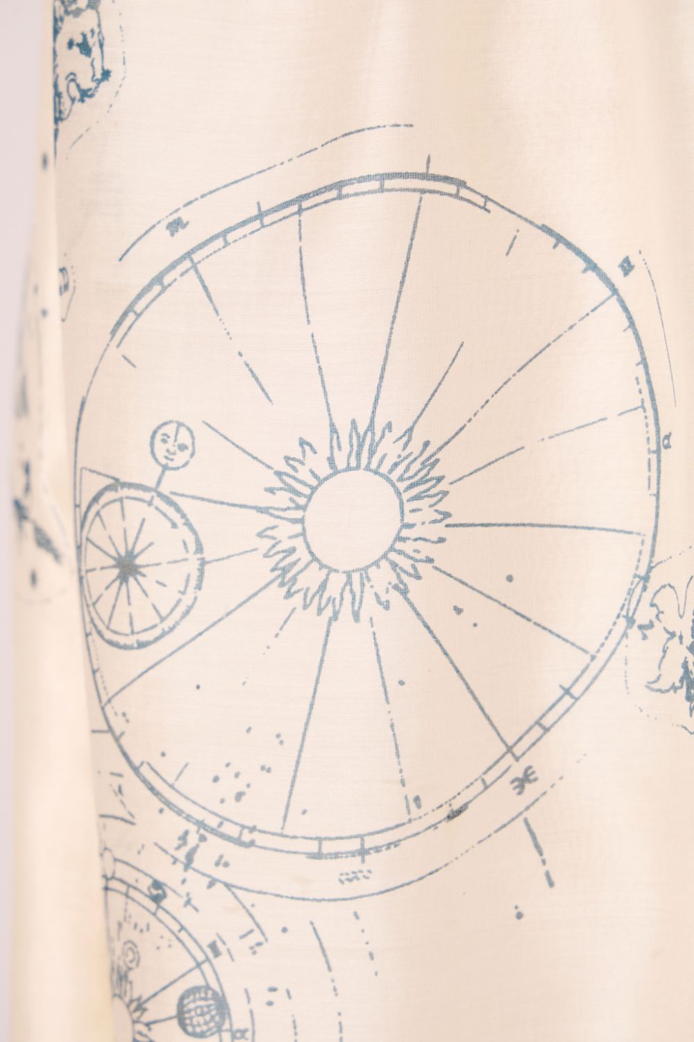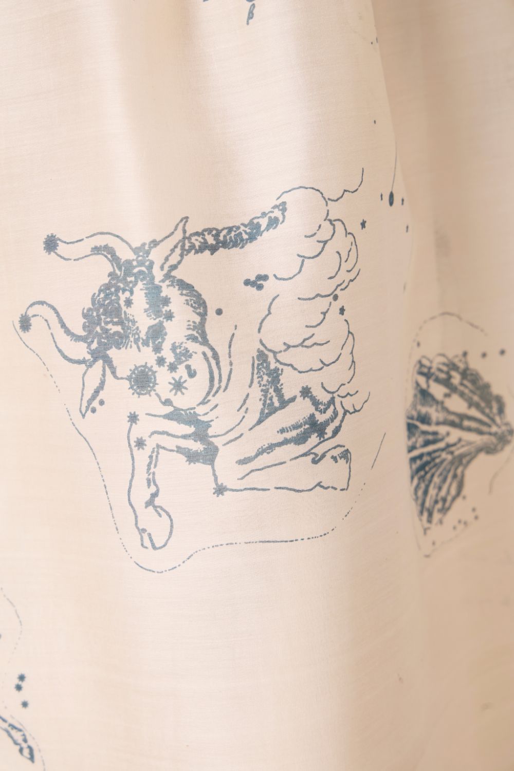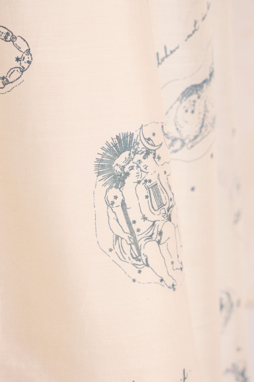 Constellations scattered across handwoven Chanderi. The fitted bodice shapes cleanly before opening into a flared hemline that holds both poise and motion. A dress that balances structure with lightness.