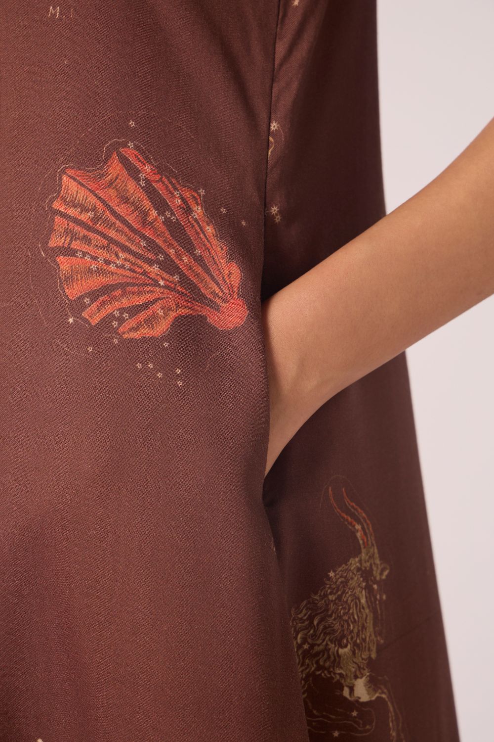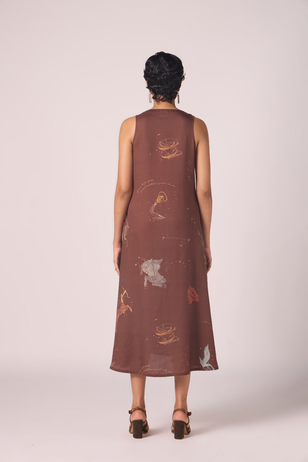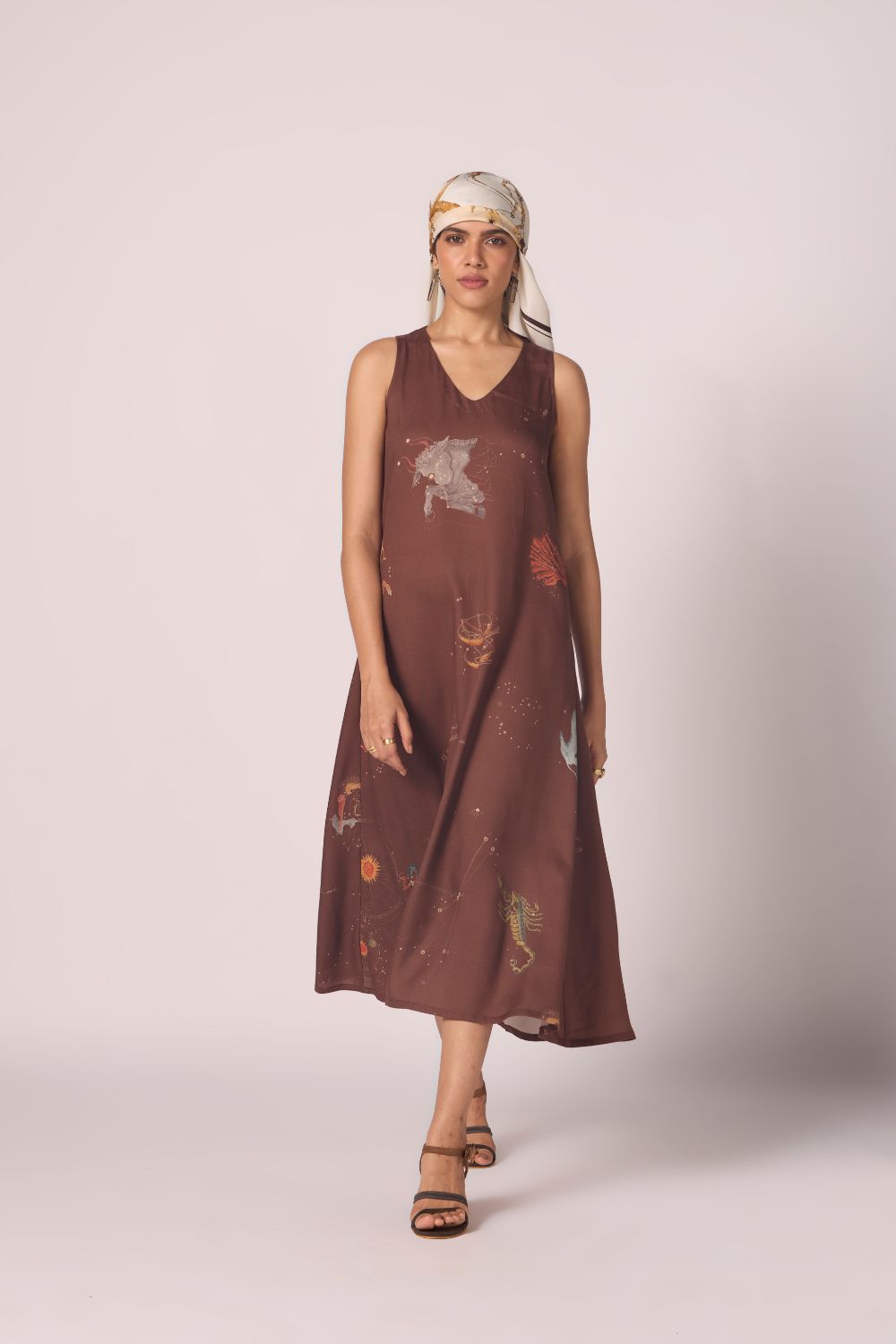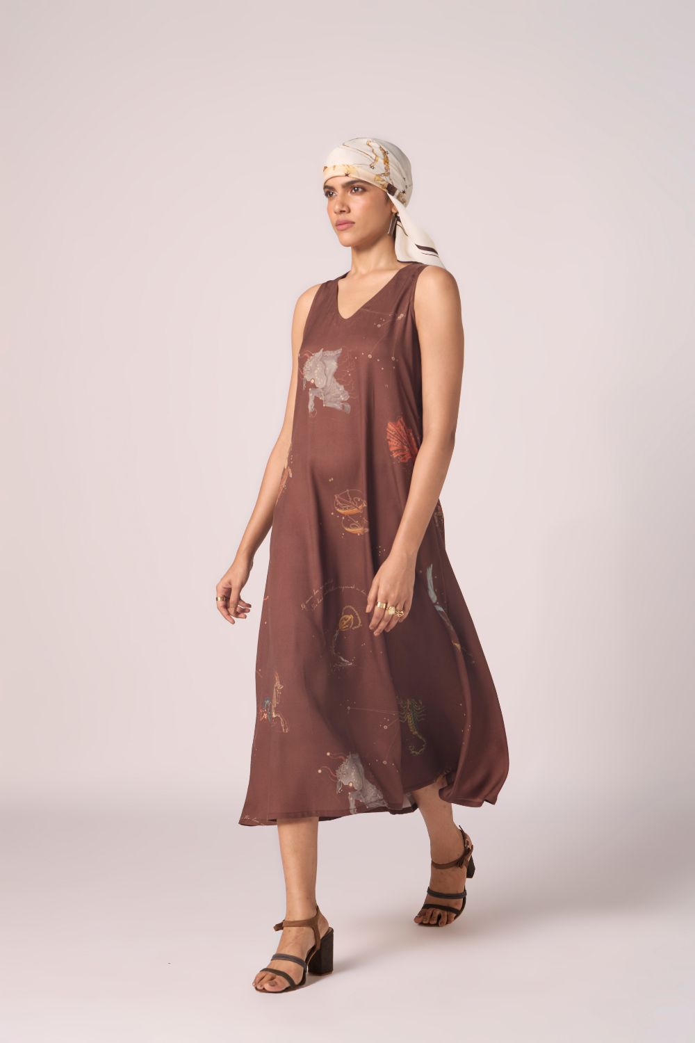 A print that flows with the body, a length that elongates. The scoop neckline and racer back create clarity of line, softened by the quiet fluidity of the tencel twill. . Balanced, flattering, assured.